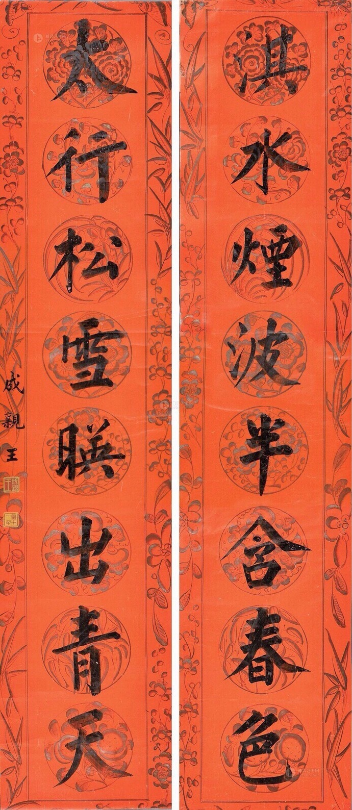 書法欣賞魏晉書法唐朝書法宋朝書法元朝書法明朝書法清朝書法近現代書法字典網>> 歷代書法>> 清朝>> 成親王楷書對聯欣賞正文 成親王楷書對聯欣賞作者:成親王 書體:楷書 和碩成親王,清朝世襲親王。乾隆五十四年(1789年),乾隆帝皇十一子永瑆封親王,封號成,死後諡號哲。成親王楷書對聯欣賞:1 2 3 4 5 下一頁 尾 頁成親王的相關書法作品:成親王·雜體詩冊 成親王草書《百家姓》 成親王小楷《群仙高賦會》 成親王楷書對聯欣賞 相關文章:王鏊·跋陸游《懷成都十韻詩卷》 (行書)王鏊跋陸游《懷成都十韻詩卷》,行書,縱34.6cm。故宮博物院藏。米芾·書論書 (行書)【釋文】草書若不入晉人格轍。徒成下品。張顛俗子。變亂古法。驚諸凡夫。自有識者。懷...米芾·蘇太簡參政帖 (行書)【釋文】蘇太簡參政家物,多著邳公之後四代相印,或用翰林學士院印。芾記。米芾《蘇太...林散之《隸書釋智果書頌橫幅》 (隸書)林散之《隸書釋智果書頌橫幅》 1960年 釋文:略 款署:公元一九六令年四月,釋...安弘嵩《大智度論殘卷》 (隸楷)安弘嵩《大智度論殘卷》(局部)紙本,隸楷書 25.1×342.5厘米 北京故宮...王羲之《妹至帖》 (草書)【釋文】妹至羸情地難遣憂之可言須旦夕營耽之。王羲之《妹至帖》,摹本,縱25.3厘...趙構《跋曹娥誄墨跡》 (行楷)趙構《跋曹娥誄墨跡》,行楷。遼寧博物館藏。屠隆《行書七言律詩軸》 (行書)屠隆《行書七言律詩軸》紙本行書 289.2初級105.9cm 上海博物館藏釋文:...趙孟頫行書《書蘇軾西湖詩》 (行書)趙孟頫 《蘇軾西湖詩》。卷 33.8x133.8 台北故宮博物院藏本卷行書蘇軾詩...劉宗周·桃花源記 (行草)劉宗周《桃花源記》,行草,現藏朵雲軒。