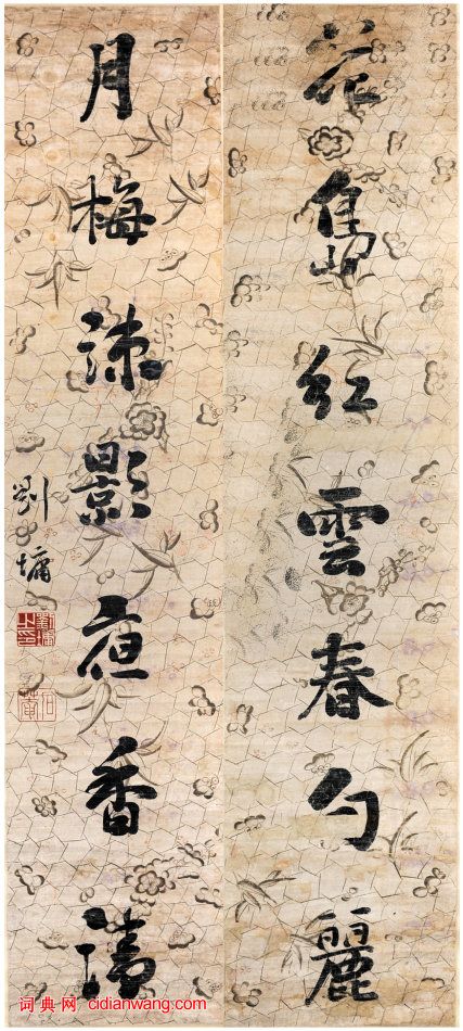 劉墉《行書花島月梅七言聯》花箋本行書 166×32cm×2 淮安市博物館藏