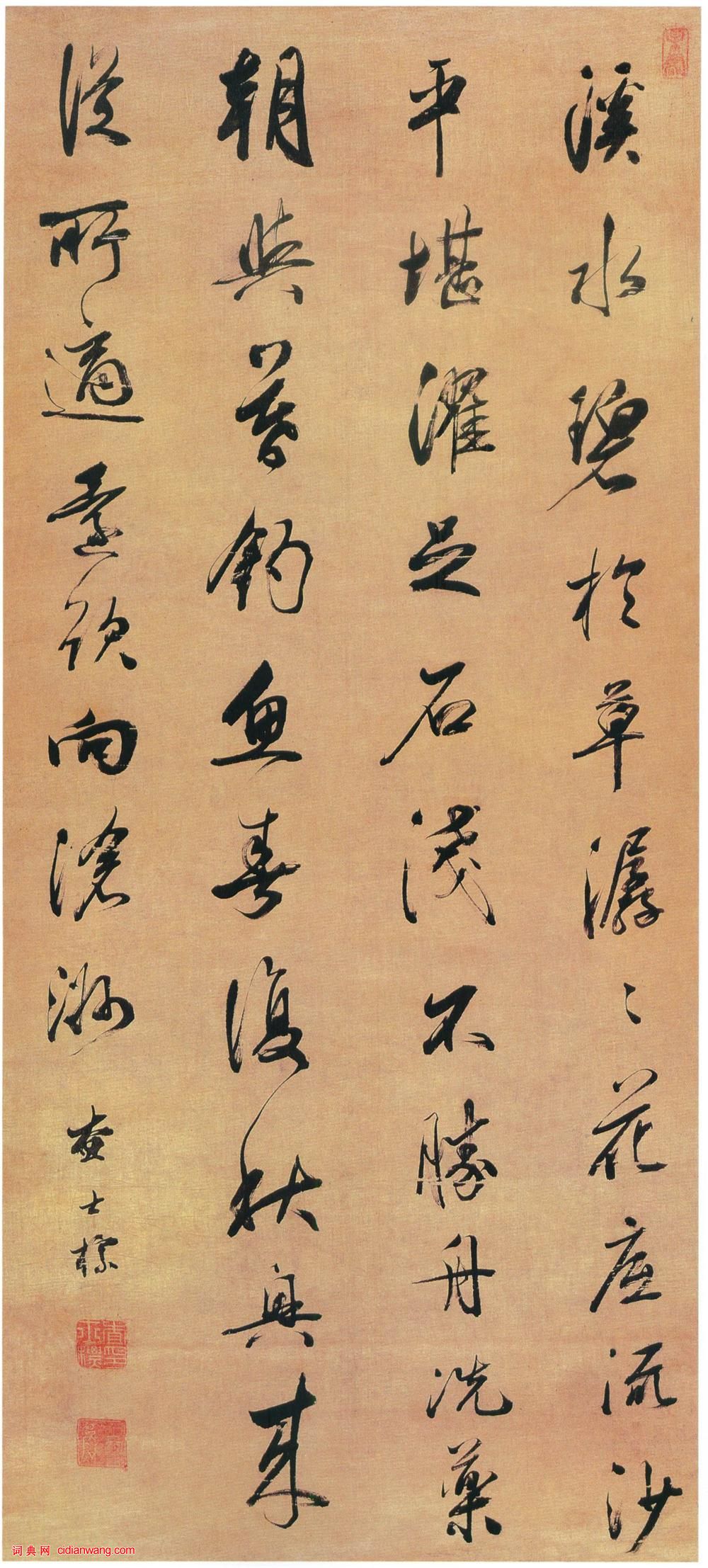 查士標《行書唐岑參終南東溪中作詩軸》綾本行書 130×54.4cm 安徽省博物館藏
