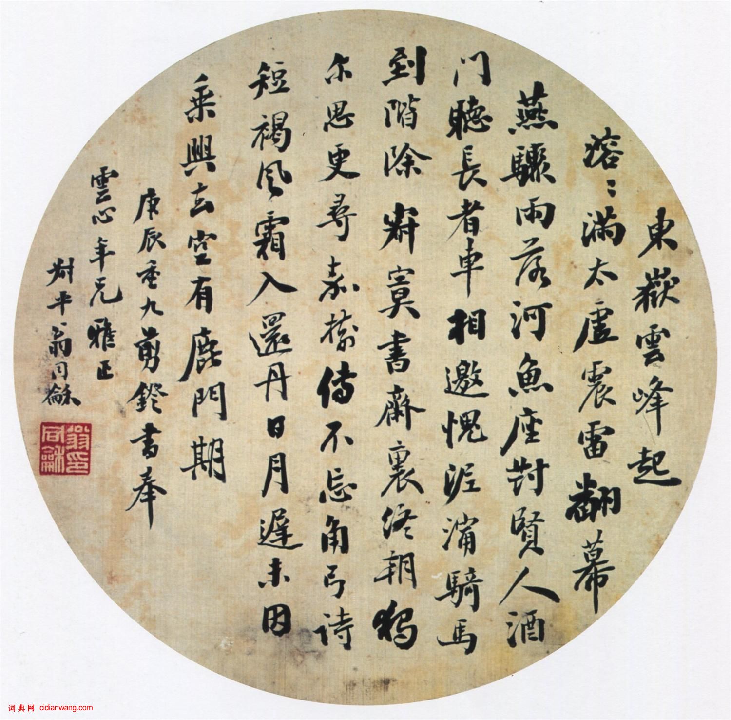 翁同龢《行書扇面》絹本行書 直徑25.2cm 1880年作 山東省博物館藏