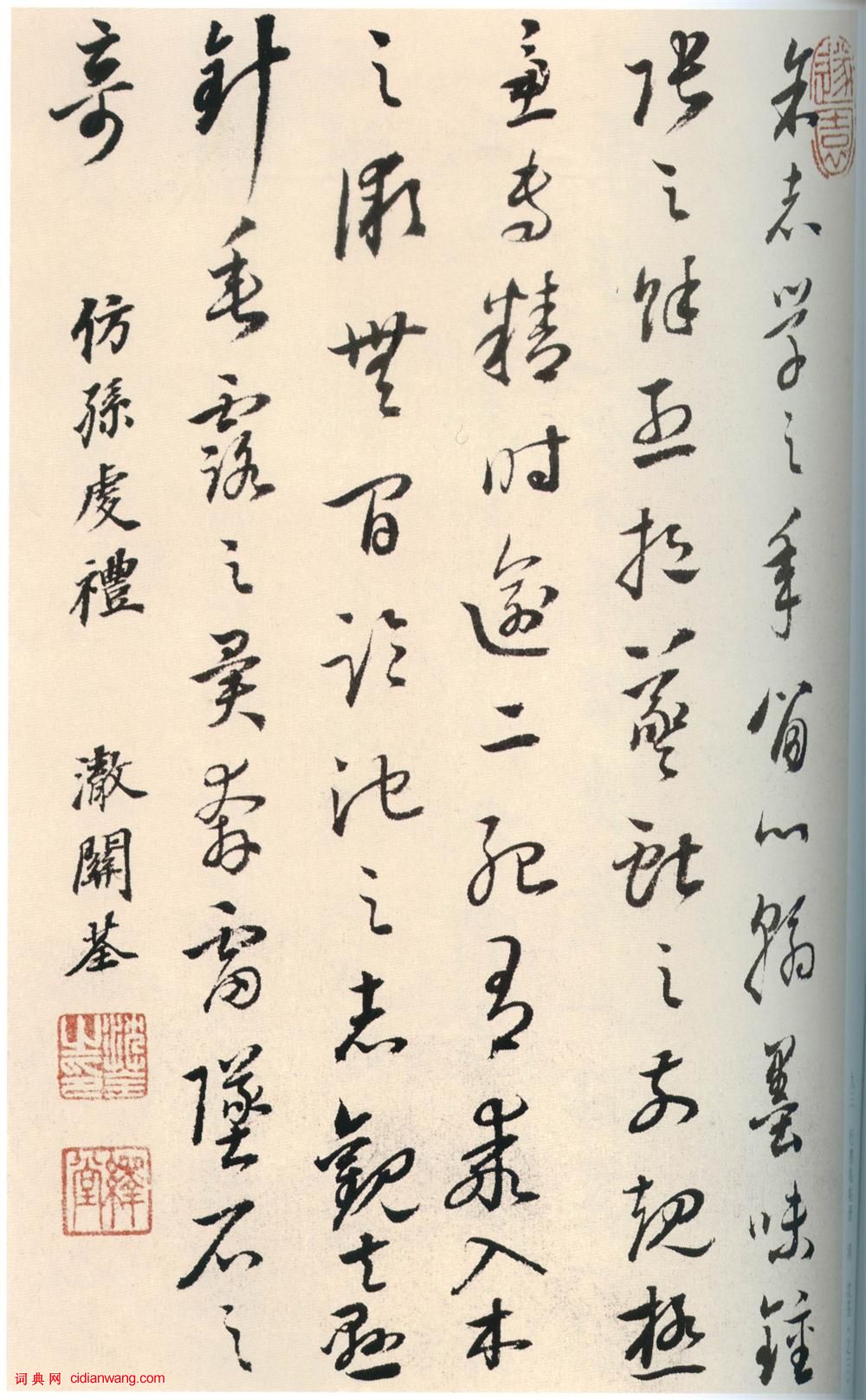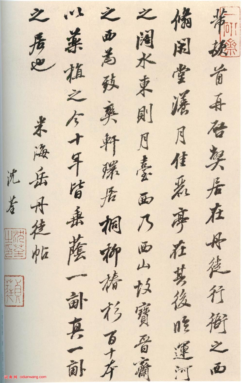 書法欣賞魏晉書法唐朝書法宋朝書法元朝書法明朝書法清朝書法近現代書法字典網>> 歷代書法>> 清朝>> 沈荃行草《臨前人法帖冊》(2)正文 沈荃行草《臨前人法帖冊》(2)作者:沈荃 書體:行草 首 頁 上一頁 1 2 沈荃的相關書法作品:沈荃《行書臨爭座位帖軸》 沈荃行書《臨褚遂良枯樹賦軸》 沈荃行書《仿米詩軸》 沈荃行書《唐武元衡春興七絕詩軸》 沈荃《行書蘭亭後序軸》 沈荃行草《臨前人法帖冊》 相關文章:成親王書法欣賞 (行楷)成親王,愛新覺羅·永瑆(1752-1823)是乾隆帝的第十一個兒子,嘉慶皇帝的...高鳳翰《行書張在辛赤壁賦書畫卷題跋》 (行書)高鳳翰《行書張在辛赤壁賦書畫卷題跋》 紙本行書 縱23cm 山西省博物院藏釋文:...虞集·跋趙孟頫《鵲華秋色圖》 (行書)虞集跋趙孟頫《鵲華秋色圖》,現藏台北故宮博物院。吳鎮《草書題王右丞雪溪圖詩二首軸》 (草書)吳鎮《草書題王右丞雪溪圖詩二首軸》紙本 38×24.5cm 濟南市博物館藏釋文...梁昇卿隸書《御史台精舍碑》 (隸書)梁昇卿生卒不詳,初仕奉天縣尉,後官至廣州都督,太子右庶子,約天寶初年卒。與張九齡...文徵明·小楷醉翁亭記 (小楷)文徵明小楷《醉翁亭記》,紙本,軸,縱53.5公分,橫28.6公分。台北故宮博物院...文徵明行書《月夜觀玉蘭》立軸 (行書)文徵明《月夜觀玉蘭》立軸。瀟灑自然的行書詩軸是文徵明《月夜觀玉蘭》之作,詩文將玉...李邕·行書李思訓碑 (行書)宋拓唐李邕行書李思訓碑《李思訓碑》全名為《雲麾將軍李思訓碑》,碑在陝西蒲城。因碑...左宗棠《篆書四屏》 (篆書)左宗棠《篆書四屏》 湖南譚國斌當代藝術博物館藏釋文:公曰:嗟!我士聽!無嘩。予誓...米芾·書論書 (行書)【釋文】草書若不入晉人格轍。徒成下品。張顛俗子。變亂古法。驚諸凡夫。自有識者。懷...