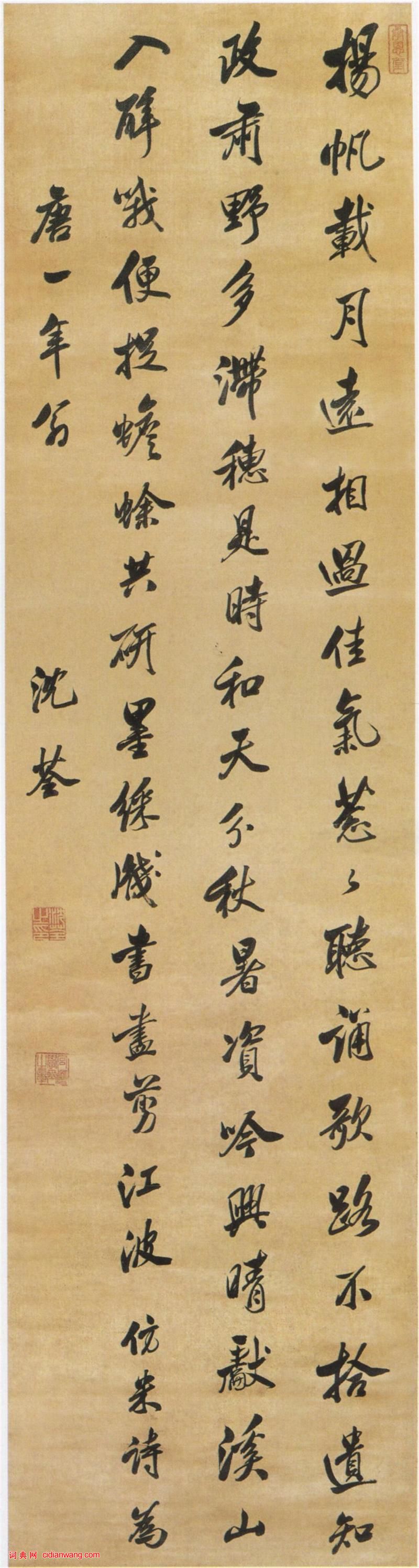 沈荃《行書仿米詩軸》綾本行書 188.2×48.4cm 浙江省博物館藏