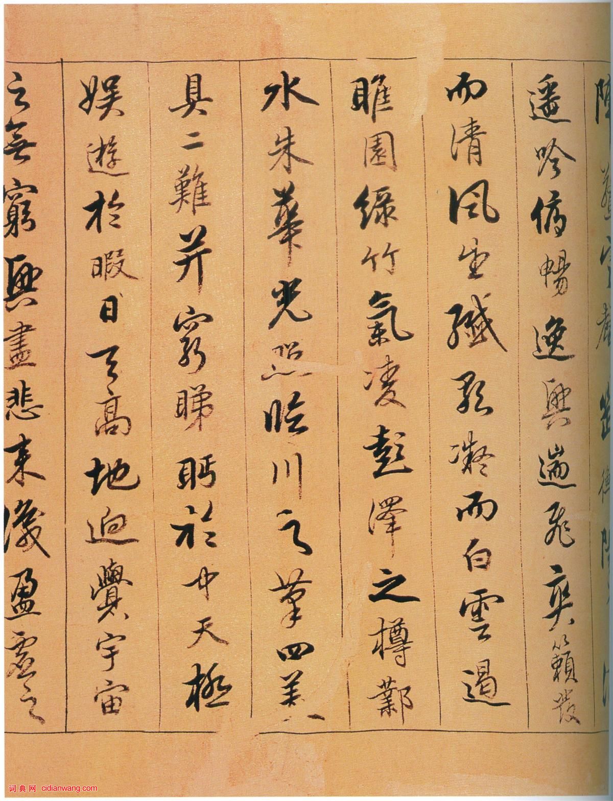 資源下載魏晉書法唐朝書法宋朝書法元朝書法明朝書法清朝書法近現代書法字典網>> 歷代書法>> 清朝>> 陳奕禧行書《滕王閣序卷》(4)正文 陳奕禧行書《滕王閣序卷》(4)作者:陳奕禧 書體:陳奕禧 首 頁 上一頁 1 2 3 4 5 6 下一頁 尾 頁陳奕禧的相關書法作品:陳奕禧行書《唐人七言詩扇》 陳奕禧行書《七絕立軸》 陳奕禧行書《滕王閣序卷》 陳奕禧草書《七絕立軸》 陳奕禧《行書詩卷》 相關文章:沈周·行書詩卷 (行書)釋文:野水浮雲盪夕光,仙舟兩宿古溪傍,清篇感舊頻翻韻,濁酒謀鄰載過牆,燭跋不知春...怎樣臨習《乙瑛碑》 (隸書)注意要點:一、首先應從字的筆畫特徵上進行分析和分類練習,通過同一類範字筆畫若干種...顏真卿楷書《東方朔畫贊碑》 (楷書)《東方朔畫贊碑》全稱《漢太中大夫東方先生畫贊碑》。自署天寶十三載(754年)十二...王穉登·跋趙孟頫《心經行書冊》 (行書)王穉登跋趙孟頫《心經行書冊》,現藏於遼寧省博物館。張芝草書《今欲歸帖》 (草書)《今欲歸帖》 傳為張芝之作,或為唐張旭所作 選自《大觀帖》(故宮博物院藏李宗翰宋...翁同龢行書《垂竿翥鶴五言聯》 (行書)翁同龢《行書垂竿翥鶴五言聯》紙本行書 150×39cm×2 常州博物館藏釋文...王寵小楷《送陳子齡會試詩》 (小楷)送陳子齡會試三首 紙本,冊頁,縱23.2厘米,橫36.3厘米。楷書,18行。北京...喜歡閒章嗎,閒章內容大全導讀:閒章,是印章中的一種,是區別于姓名字號章的一類。廣義地講,它濫觴於戰國及秦...文徵明《草書詩卷》 (草書)文徵明草書詩卷 紙本 縱29.5厘米,橫133.4厘米。無錫市博物館藏釋文:“山...吳偉業·跋仇英《臨宋蕭照高宗瑞應圖》 (行書)吳偉業跋仇英《臨宋蕭照高宗瑞應圖》,行書,縱33厘米。故宮博物院藏。