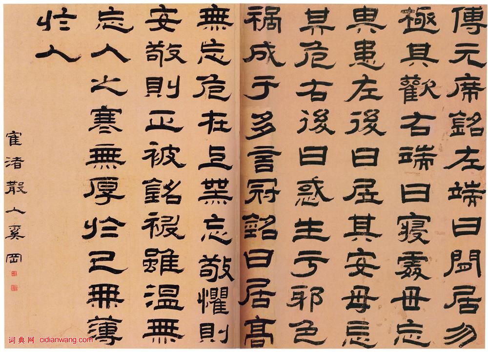書法欣賞魏晉書法唐朝書法宋朝書法元朝書法明朝書法清朝書法近現代書法字典網>> 歷代書法>> 清朝>> 奚岡《隸書傅玄席銘橫幅》正文 奚岡《隸書傅玄席銘橫幅》作者:奚岡 書體:隸書 奚岡《隸書傅玄席銘橫幅》紙本隸書 114×150cm 安徽省博物館藏款署:鶴渚散人奚岡。【資料來源】《中國法書全集》-17-清2(文物出版社)奚岡的相關書法作品:奚岡行書《錄論書語扇面》 奚岡《隸書傅玄席銘橫幅》 奚岡隸書《華言妙句七言聯》 奚岡《草書軸》 相關文章:米芾行書《李太師帖》 (行書)李太師帖 元祐二年(1087年) 紙本 縱25.8厘米 橫31.3厘米 日本東京...褚遂良·倪寬贊 (楷書)《倪寬贊》楷書,傳為唐代褚遂良法帖。24.6x170.1。台北故宮博物院藏。《石...徐三庚《篆書冊頁倪寬傳、張湯傳等》 (篆書)徐三庚《篆書冊頁倪寬傳、張湯傳等》紙本篆書 32×19cm×29 朵雲軒藏釋...王鐸草書《臨柳公權辱問帖軸》 (草書)王鐸《臨柳公權辱問帖軸》(五十六歲作) 自署書於丁亥年(清順治四年,1647年)...米芾《行書間架結構92法》米芾作書十分認真,不像某些人想像的那樣,不假思索一揮而就。米芾自己說:“余寫《海...葉恭綽 《行書軸》 (行書)葉恭綽 《行書軸》青島市博物館藏(圖片來自青島市博物館網站)張雨行書《題張彥輔畫詩卷》 (行書)張雨《題張彥輔畫詩卷》 紙本 29.3×148.5cm 無紀年 北京故宮博物院...傅山草書《摘得紅梨葉詩》軸 (草書)傅山《摘得紅梨葉詩》軸 絹本 168x47cm 山西省博物館藏釋文:摘得紅梨葉,...莊麟·題《翠雨軒圖》 (章草)【釋文】持敬以翠雨名其軒,諸名公為詩文題卷。余因隨牒京師,與持敬會於朝天宮,出此...吳昌碩行書手稿 (行書)吳昌碩 手稿 紙本 縱22.8厘米,橫22.8厘米。湖州博物館藏。此為清吳昌碩的...