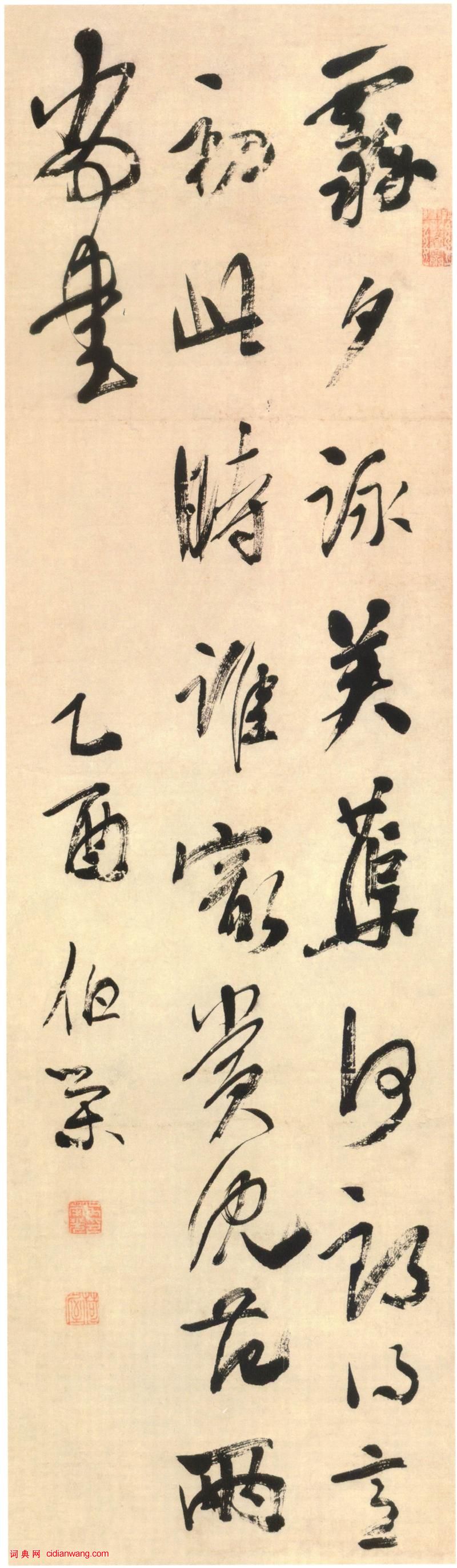 書法欣賞魏晉書法唐朝書法宋朝書法元朝書法明朝書法清朝書法近現代書法字典網>> 歷代書法>> 清朝>> 吳榮光行書《錄李商隱漫成一首詩軸》正文 吳榮光行書《錄李商隱漫成一首詩軸》作者:吳榮光 書體:行書 吳榮光《錄李商隱漫成一首詩軸》紙本行書 105.8×30.5cm 北京故宮博物院藏 釋文:霧夕詠芙蕖,何郎得意初。此時誰最賞,沈范兩尚書。乙酉,伯榮。 【資料來源】《中國法書全集》-18-清3(文物出版社)吳榮光的相關書法作品:吳榮光行書《致晴圃書札》 吳榮光《致晴圃書札》 吳榮光《中堂袁清容詩》 吳榮光·臨王羲之《游目帖》 吳榮光行書《錄李商隱漫成一首詩軸》 吳榮光《行書四條屏》 吳榮光·跋周東卿《魚樂圖》 相關文章:米友仁《動止持福帖》 (行書)【釋文】友仁皇恐頓首再拜,宗丞學士至性坐右。即日伏惟節抑順變序之遷,動止持福,不...趙之謙《楷書安得但見七言聯》 (楷書)趙之謙《楷書安得但見七言聯》 121×27cm×2 西泠印社藏 釋文:安得山...孫岳頒《行書曉起尋花七絕詩軸》 (行書)孫岳頒《行書曉起尋花七絕詩軸》綾本行書 192×47cm 重慶市博物館藏 釋文...唐寅行書《落花詩冊》蘇州市博物館藏本 (行書)唐寅《落花詩冊》蘇州市博物館藏本 行書 紙本冊頁,三十四開,每開尺寸27cm x...倪元璐《行草書題小桃源圖詩軸》 (行草)倪元璐《行草書題小桃源圖詩軸》 絹本行草書,133.7×41.9cm。北京故宮...黃道周行草《進神宗實錄有作詩軸》 (行草)黃道周《進神宗實錄有作詩軸》絹本 行草 189.2×50.4cm 遼寧省博物館...駱秉章楷書《天地文章七言聯》 (行草)駱秉章《楷書“天地文章”七言聯》 129×30cm×2 湖南省博物館藏釋文:...歐楷基本筆畫:永字八法歐楷基本筆畫,永字八法其實就是【永】這個字的八個筆畫,代表中國書法中筆畫的大體運...周必大·跋李結《西塞漁舍圖》 (行書)周必大跋李結《西塞漁舍圖》,縱40.7厘米。大都會美術館藏。文徵明《草書七律立軸》 (草書)草書七律立軸 見於中國嘉德國際拍賣有限公司2005春季拍賣會中國古代書畫專場尺 ...