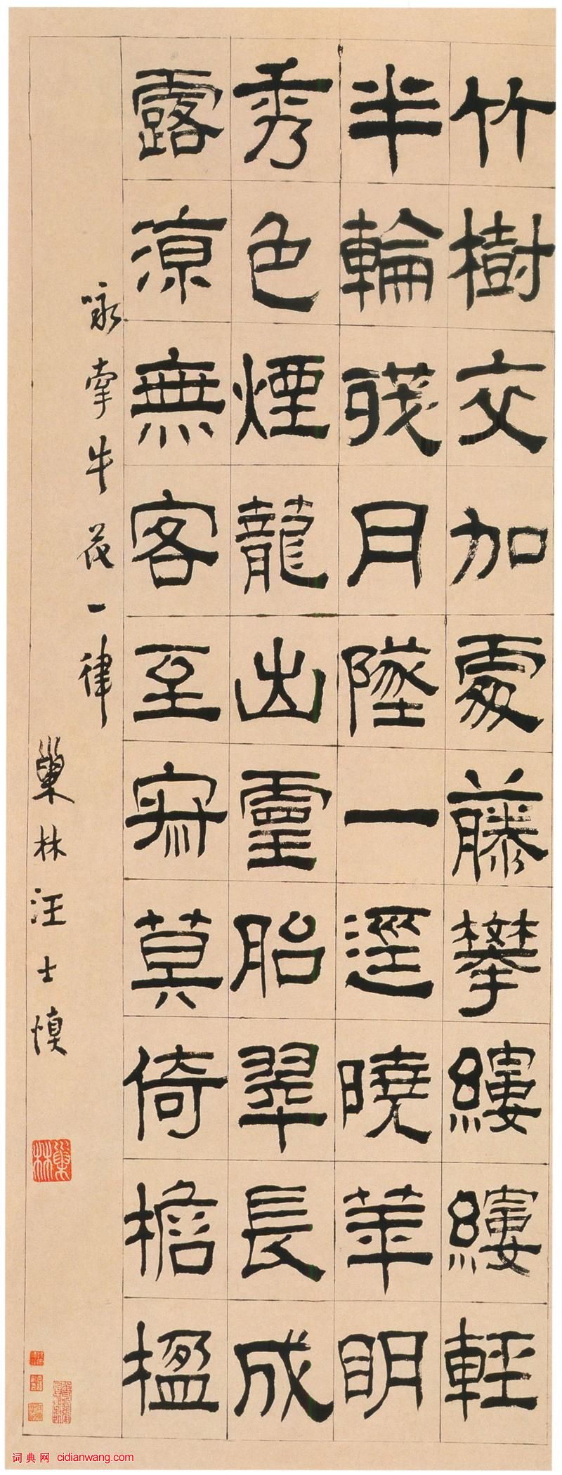 汪士慎《隸書詠牽牛花軸》紙本隸書 98.5×37cm 上海博物館藏