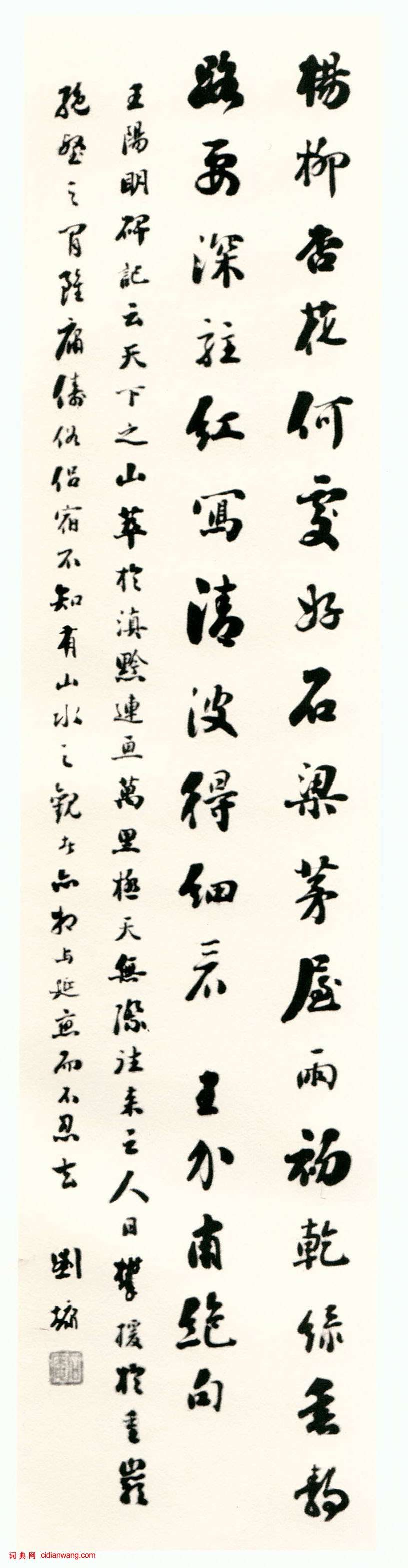 此為劉墉行書四條屏,內容分別為李白詩二首、王安石絕句、臨顏真卿蔡明遠帖、臨古法帖,後面雖為臨帖,但純為自運,其書出於顏真卿、糅合蘇軾、董其昌二家,遂自成一格,筆劃凝厚,而轉折處提筆皆極輕靈,故其書雖爛漫腴潤,卻能以玲瓏巧妙之筆,尤勝人一籌。此四屏條落筆楚楚,一絲不苟,堪稱佳作。