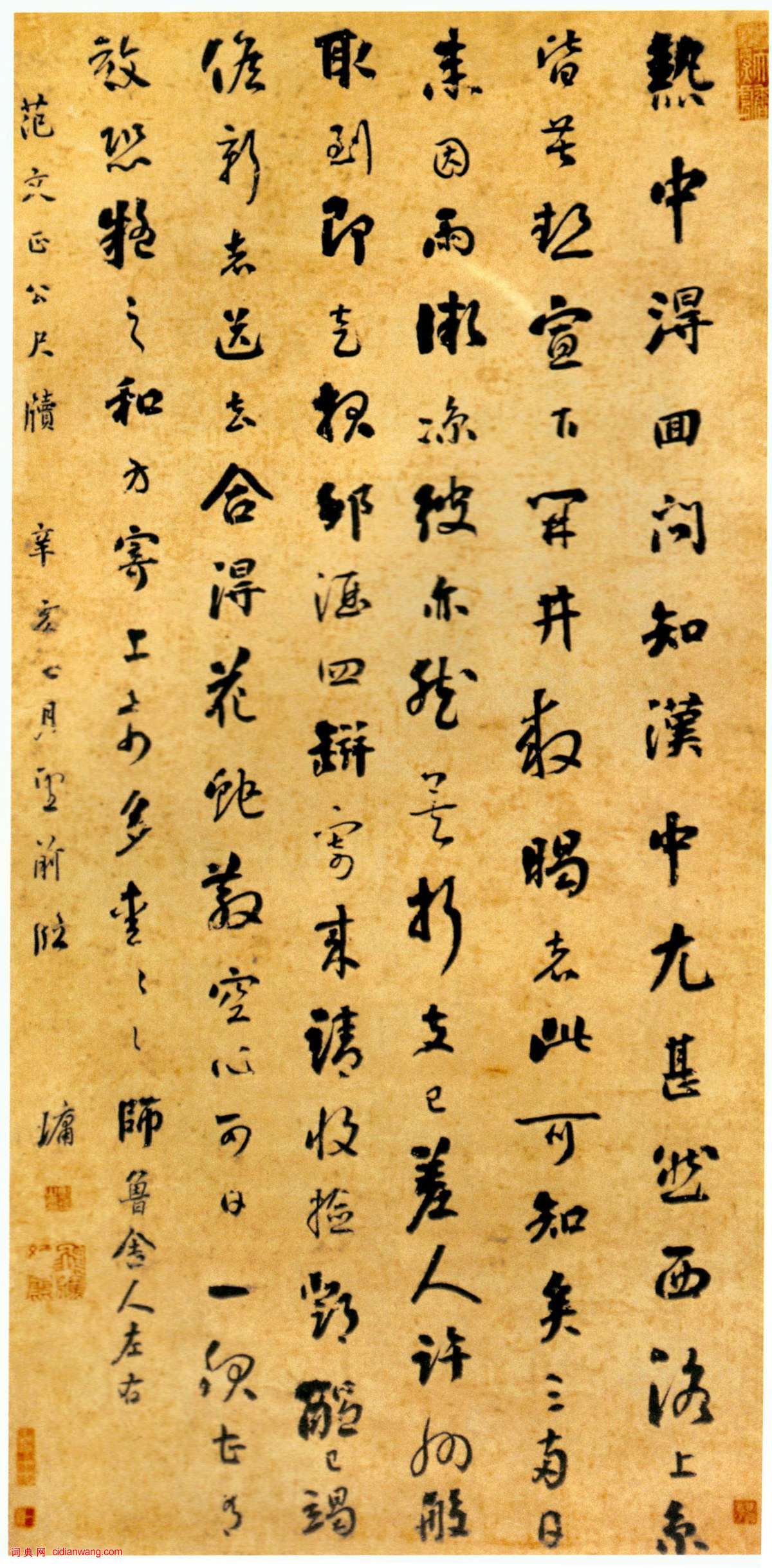 書法欣賞魏晉書法唐朝書法宋朝書法元朝書法明朝書法清朝書法近現代書法字典網>> 歷代書法>> 清朝>> 劉墉行書《臨范文正公尺牘立軸》正文 劉墉行書《臨范文正公尺牘立軸》作者:劉墉 書體:行書 劉墉《臨范文正公尺牘立軸》行書 山東省博物館藏 釋文:【資料來源】《中國書法》雜誌2010年第六期 劉墉的相關書法作品:劉墉行書《臨范文正公尺牘立軸》 劉墉《行書七絕軸》 劉墉行書 《節臨薛紹彭蘭亭序臨本軸》 劉墉行書《幽人仙客七言聯》 劉墉行書《節錄白居易“錢唐湖石記”立軸》 劉墉行書《節錄陸廷燦“續茶經”立軸》 劉墉《行書句里舌端七言聯》 劉墉《行書四言聯》 劉墉《楷書御製四知書屋記頁》 相關文章:東漢隸書《幽州書佐秦君石闕》 (隸書)《幽州書佐秦君石闕》拓片 此石1964年出土於北京西郊石景山。無年月,存陽文“漢...陸機《平復帖》 (章草)【釋文】彥先羸瘵,恐難平復,往屬初病,慮不止此,此已爲慶。承使唯男,幸爲複失前憂...田蘊章楷書《千字文》 (楷書)千字文,由南北朝時期梁朝散騎侍郎、給事中周興嗣編纂、一千個漢字組成的韻文(在隋唐...歐陽通《道因法師碑》 (楷書)《道因法師碑》全名為《大唐故翻經在德益州多寶寺道因法師碑》,唐龍朔三年(663)...程邃《行楷書扇面》 (行楷)程邃《行楷書扇面》 上海博物館藏【資料來源】轉自《上海博物館藏明清書畫扇面名品百...林散之行草《酒逢禮愛五言聯句》 (行草)林散之《酒逢禮愛五言聯句》紙本 1980年作 釋文:酒逢名士飲,禮愛野人真。 款...張雨·澱湖社集尺牘 (行書)【釋文】天雨頓首。近因澱湖社集。愛其風物。遂結茆於西靜住庵雲缽道人居之東。則陳仲...楊嘉祚·跋虞世南《摹蘭亭序》 (草書)楊嘉祚跋虞世南《摹蘭亭序》,縱24.5厘米。現藏於北京故宮博物院。蔡京行書《節夫帖》 (行書)蔡京《節夫帖》紙本行書 32.3×42.3cm 台北故宮博物院藏《節夫帖》,全...田英章硬筆楷書間架結構28法 (楷書)田英章硬筆楷書間架結構28法,學硬筆書法的書友不凡看看。所謂間架結構,即為構圖和...