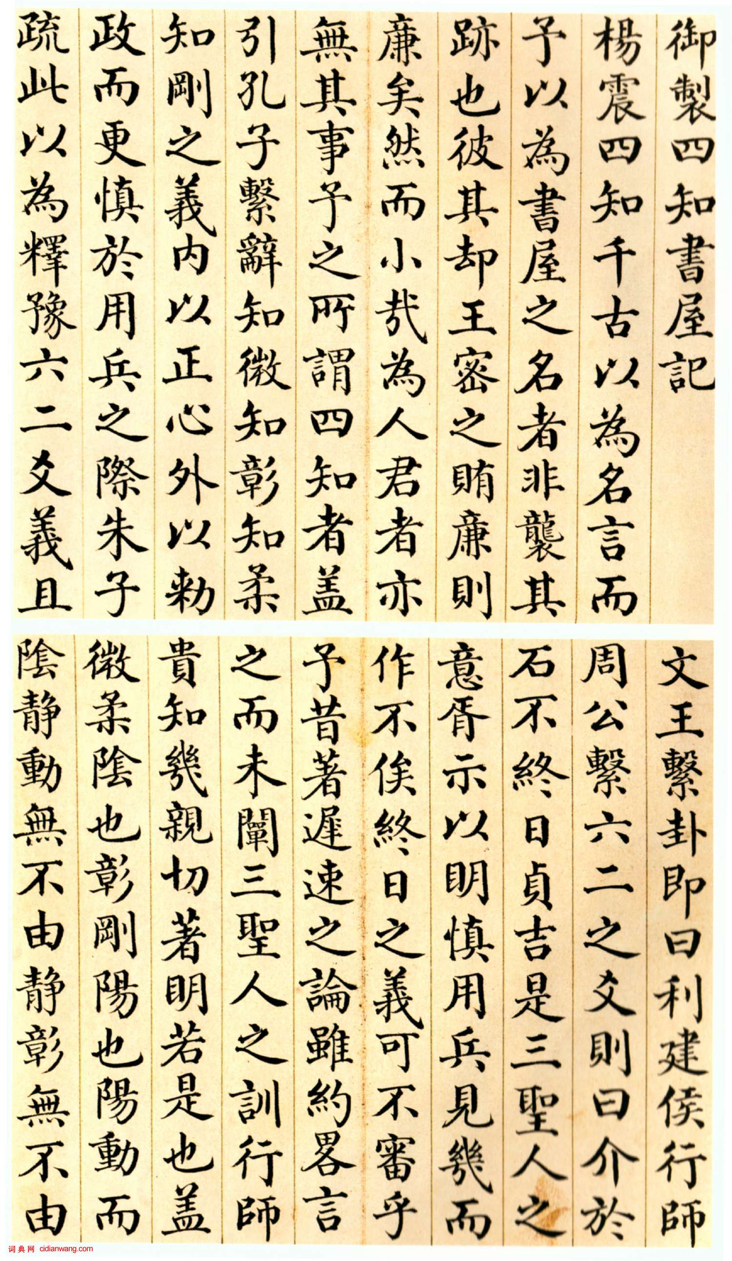 書法欣賞魏晉書法唐朝書法宋朝書法元朝書法明朝書法清朝書法近現代書法字典網>> 歷代書法>> 清朝>> 劉墉《楷書御製四知書屋記頁》正文 劉墉《楷書御製四知書屋記頁》作者:劉墉 書體:楷書 劉墉《楷書御製四知書屋記頁》(部分) 釋文:略 【資料來源】《中國書法》雜誌2010年第六期 劉墉的相關書法作品:劉墉行書《節錄陸廷燦“續茶經”立軸》 劉墉行書《幽人仙客七言聯》 劉墉《行書集陸游詩句聯》 劉墉《行書句里舌端七言聯》 劉墉行書《沉香山子賦》 劉墉《小楷逸品冊》 劉墉《行書花島月梅七言聯》 劉墉行書《雜書冊》 劉墉《臨顏真卿送蔡明遠敘行草軸》 相關文章:2017年顏真卿集字春聯顏真卿《集字春聯》欣賞,春節將近,準備自己動手的收下吧1.門迎曉日財源廣,戶納春...今釋行書《再承朽翁言笑詩扇》 (行書)今釋《行書再承朽翁言笑詩扇》金箋行書 16.1×50.7cm 1679年 上海...何紹基《隸書軸》 (隸書)清 何紹基《隸書軸》 115.5×52.3cm 台北故宮博物院藏本幅隸書,筆力...顏真卿行草《劉中使帖》 (行草)顏真卿《劉中使帖》約書於大曆十年(775年)。墨跡。行書,信札。28.5×43...董小宛楷書《 杜甫詩三首扇面》 (楷書)董小宛《 杜甫詩三首扇面》紙本楷書 17×50cm 南京海2016年春拍 款識...東漢《郃陽令曹全碑》拓本 (隸書)曹全碑,全稱郃陽令曹全碑,又稱曹景完碑,刻於東漢靈帝中平二年(185年),碑陽2...趙孟頫小楷《黃庭經》 (小楷)趙孟頫小楷臨《黃庭經》彩色墨跡本,26.5*485.4厘米,北京故宮博物院藏本。...歐陽詢《 千字文》 (行書)歐陽詢書《千字文》,見於著錄的共有三本:一為蔡襄題識過的《草書千字文》,一為南宋...東漢隸書《裴岑紀功碑》 (隸書)《裴岑紀功碑》東漢碑刻,全稱《漢敦煌太守裴岑紀功碑》,順帝永和二年(137)立於...徐賁《題濯清軒》 (楷書)【釋文】題濯清軒。春草綠芳洲,清江繞舍流。芹香低渚燕,波影媚沙鷗。風滯初聞笛,花...
