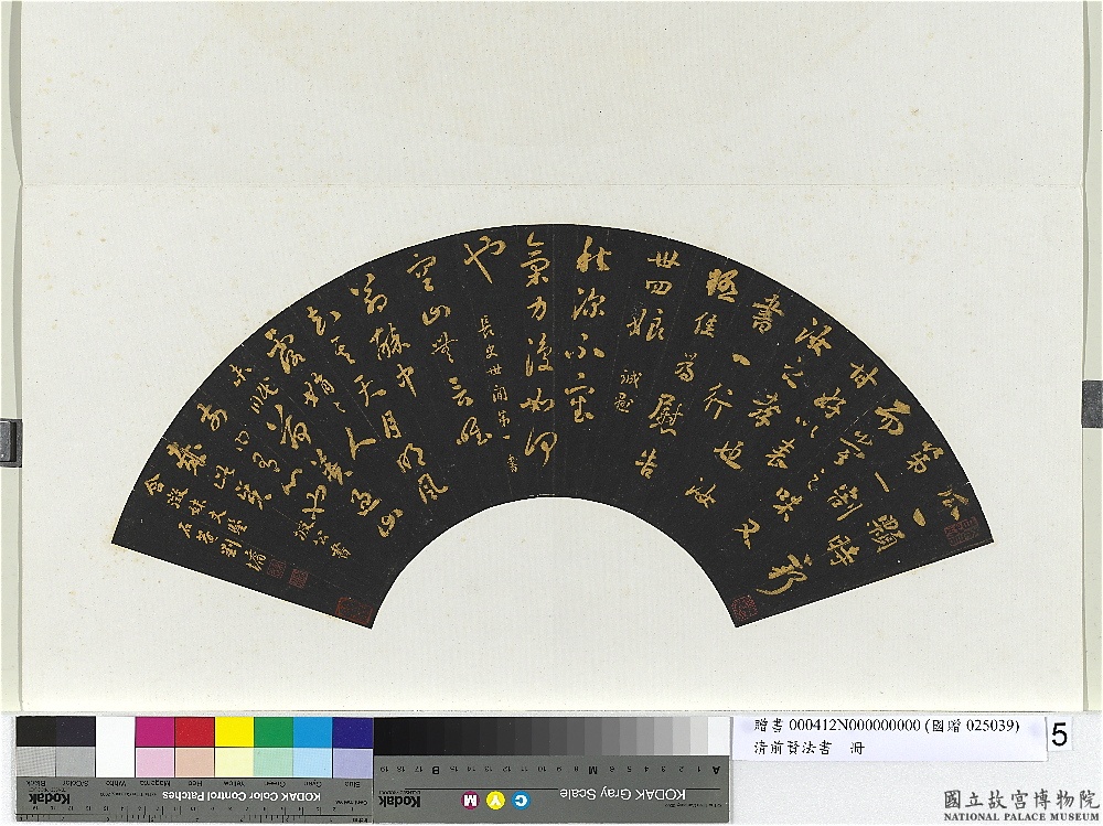 劉墉《臨前賢法帖扇面》烏紙行草書 16×51.2cm 台北故宮博物院藏