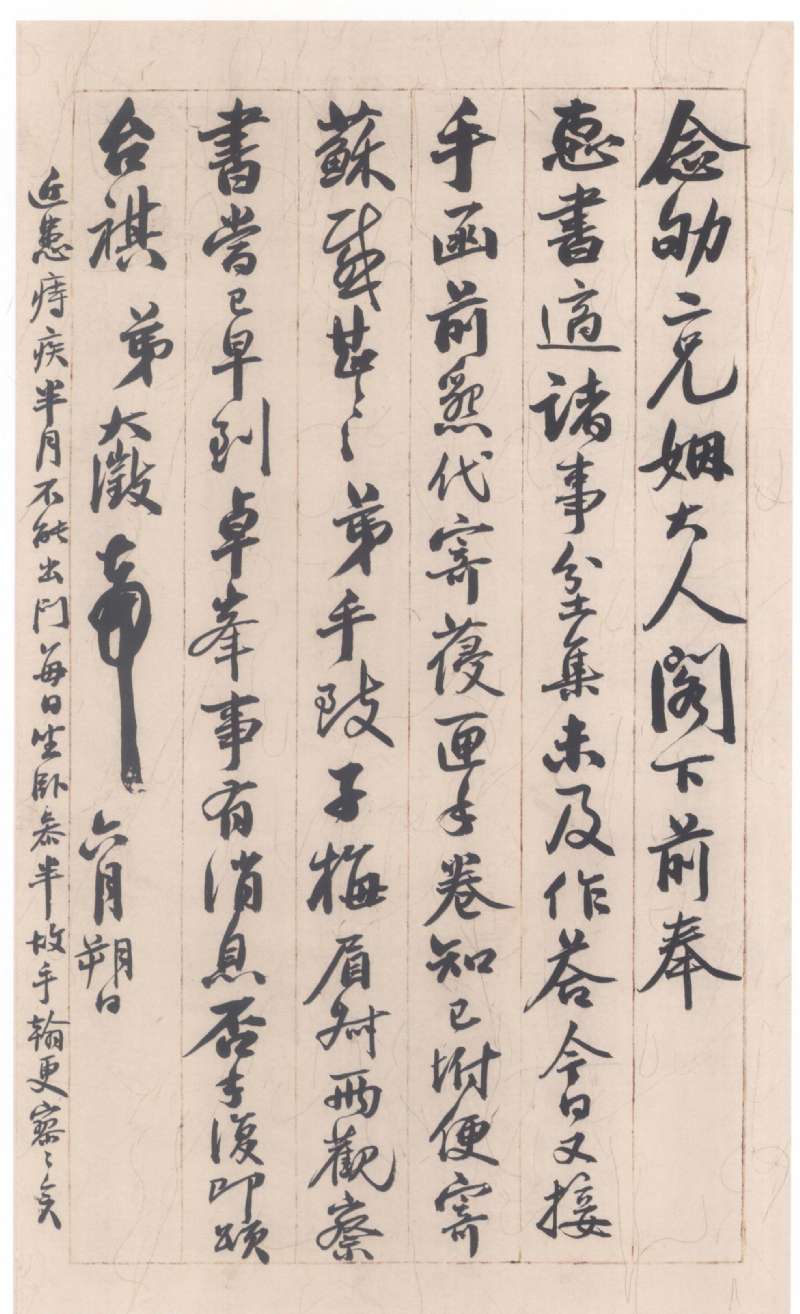 書法欣賞魏晉書法唐朝書法宋朝書法元朝書法明朝書法清朝書法近現代書法字典網>> 歷代書法>> 清朝>> 吳大澂《行書手札》(7)正文 吳大澂《行書手札》(7)作者:吳大澂 書體:行書 首 頁 上一頁 3 4 5 6 7 8 9 10 11 12 下一頁 尾 頁吳大澂的相關書法作品:吳大澂行書《致大兄書札》 吳大澂《篆書知過論軸》 吳大澂篆書《集石鼓文樹古水流八言聯》 吳大澂散氏盤集字聯 吳大澂篆書《臨段敦(簋)》 吳大澂篆書《從善有懷八言聯》 吳大澂《篆書白鶴泉銘》 吳大澂篆書《李公廟碑》 吳大澂行書手札 相關文章:北魏《吳光墓誌》民國拓本 (魏碑)下面來看看這個北魏石刻拓本北魏書法石刻《吳光墓誌》民國拓本吳光墓誌,洛陽, 北魏...趙孟頫行書跋《韓滉五牛圖卷》 (行書)元代趙孟頫行書題跋《韓滉五牛圖卷》,北京故宮博物院藏。釋文:右唐韓晉公五牛圖,神...魏碑《元楨墓誌》 (楷書)《元楨墓誌》是元魏宗子志石時間最古的。刻於魏孝文帝太和二十年(公元496年),是...米芾·蘇太簡參政帖 (行書)【釋文】蘇太簡參政家物,多著邳公之後四代相印,或用翰林學士院印。芾記。米芾《蘇太...康有為《行書茂竹晴雲五言聯》 (行書)康有為《行書茂竹晴雲五言聯》紙本行書, 尺寸126×32.5cm×2, 浙江...李陽冰篆書《三墳記》 (篆書)碑陽:碑陰:《三墳記》,唐李季卿撰文,李陽冰篆書。唐大曆二年(767年)立。碑文...石濤行書《記雨歌帖》 (行書)石 濤《記雨歌帖》 紙本 50 ×30cm 康熙四十四年(1705年) 上海...南朝《梁蕭憺碑》 (楷書)南朝《梁蕭憺碑》,貝義淵書。 貝義淵,南朝,梁代書家。吳興(今屬浙江省)人。工書...翁方綱行書《斜街行立軸》 (行書)翁方綱《斜街行立軸》紙本行書 132×33.8cm 天津博物館藏釋文:斜街紫藤...趙孟頫小楷《黃庭經》 (小楷)趙孟頫小楷臨《黃庭經》彩色墨跡本,26.5*485.4厘米,北京故宮博物院藏本。...