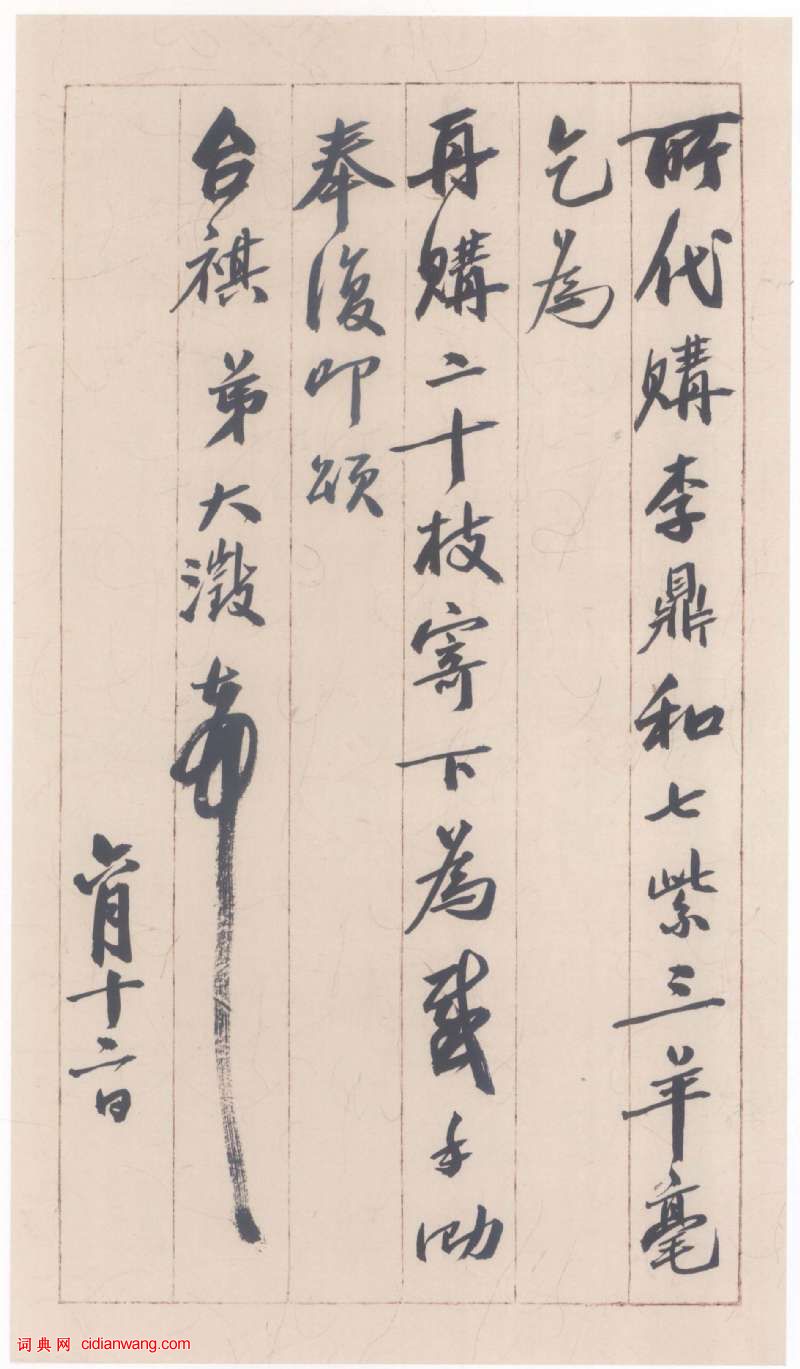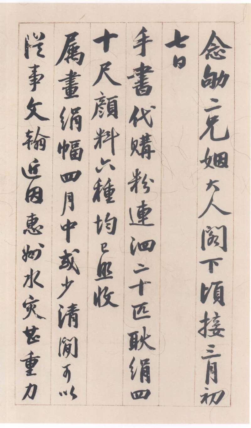 書法欣賞魏晉書法唐朝書法宋朝書法元朝書法明朝書法清朝書法近現代書法字典網>> 歷代書法>> 清朝>> 吳大澂《行書手札》(8)正文 吳大澂《行書手札》(8)作者:吳大澂 書體:行書 首 頁 上一頁 4 5 6 7 8 9 10 11 12 13 下一頁 尾 頁吳大澂的相關書法作品:吳大澂行書《致大兄書札》 吳大澂《篆書白鶴泉銘》 吳大澂篆書《集石鼓文樹古水流八言聯》 吳大澂篆書《臨段敦(簋)》 吳大澂篆書《從善有懷八言聯》 吳大澂行書手札 吳大澂行書《書示嶽麓書院肄業諸生手帖》 吳大澂散氏盤集字聯 吳大澂《篆書知過論軸》 相關文章:張駿·行書手札 (行書)張駿《手札》,北京故宮博物院藏。刊於《中國書法》雜誌1991年第一期(贈頁)。胡問遂臨《張黑女墓誌》 (楷書)張黑女墓誌 全稱《魏故南陽太守張玄墓誌》,北魏普泰元年(公元531年)刻,為魏墓...精湛的楷書,是這樣寫成的!漢字都有其特定的形態。筆畫的長短疏密、偏旁的大小高低,都有一定的安排處置,這就叫...莫是龍·跋柳公權《蘭亭詩》 (行書)莫是龍跋柳公權《蘭亭詩》,北京故宮博物院藏。林則徐行書《上皇山採石》 (行書)林則徐《行書上皇山採石》軸 紙本 169X59.5cm 西泠印社藏 資料來...徐渭草書《詠月詞軸》 (草書)徐渭《詠月詞軸》 紙本 208×79cm 山西省博物館藏釋文:冰輪掛處,有...王寵·自書雜詩二種 (草書)王寵《自書雜詩二種》。本書是明代書法家王寵用草書所寫的雜詩卷,紙本,行草書,共7...高鳳翰《行書西亭睡起詩軸》 (行書)高鳳翰《行書西亭睡起詩軸》 紙本行書 139.9×59.5cm 上海博物館藏釋...呂潛《行書自作七絕詩軸》 (行書)呂潛《行書自作七絕詩軸》紙本行書 186.4×61.1cm 上海博物館藏釋 文...林散之跋黃賓虹《黃山臥遊》 (行書)▶釋文:黃山臥遊|前後雲海,一松一石無不入畫,撫琴動操,欲令眾山皆響。 虹叟林散...