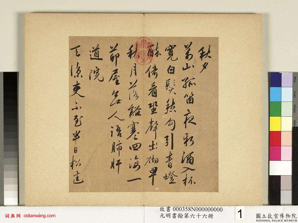 【資料來源】來自 台北故宮博物院網站(故-書-000358-0000-元明書翰第六十六冊)
