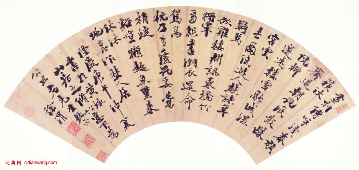徐渭《行書錄杜甫詩二首扇面》 上海博物館藏。