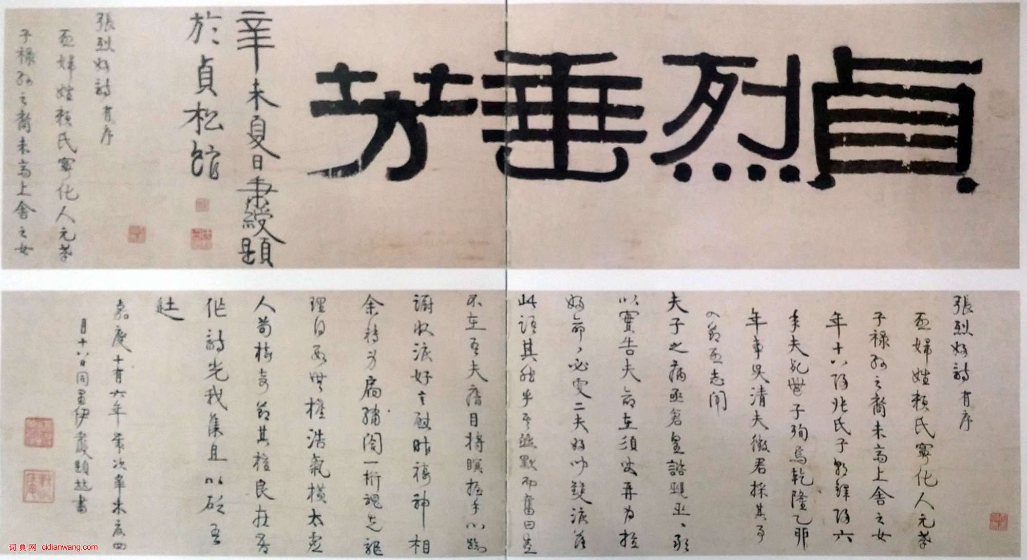 書法欣賞魏晉書法唐朝書法宋朝書法元朝書法明朝書法清朝書法近現代書法字典網>> 歷代書法>> 清朝>> 伊秉綬《行書張烈婦詩並序》正文 伊秉綬《行書張烈婦詩並序》作者:伊秉綬 書體:行書 伊秉綬《行書張烈婦詩並序》卷 84×46.6cm 福建博物館藏【資料來源】《福建博物院書畫藏品選粹》(文物出版社)伊秉綬的相關書法作品:伊秉綬隸書《退一步齋橫幅》 伊秉綬隸書《清門嘉日七言聯 》 伊秉綬隸書《政成心逸五言聯》 伊秉綬隸書《沽酒誦詩七言聯》 伊秉綬隸書《從來可以五言聯 》 伊秉綬行書《節錄嚴可均鐵橋漫稿句軸》 伊秉綬《行書張烈婦詩並序》 伊秉綬隸書《毋自欺齋橫額》 伊秉綬行書《張詠寄傳逸人詩軸》 相關文章:張瑞圖草書《李夢陽登高以雨留山寺七律扇面》 (草書)張瑞圖《書李夢陽登高以雨留山寺七律扇面》泥金箋本草書 17.8×54cm 上海...吳熙載篆書《宋武帝與臧燾敕》 (篆書)吳煕載,原名廷颺,字煕載,後因避穆宗載淳諱更字讓之,號晚學居士,江蘇儀征人。他長...李邕行書《奉別帖》墨拓 (行書)李邕《奉別帖》墨拓 見於宋拓《潭帖》約書於開元二十二年〔七三四)。行書。凡四行,...三國曹魏碑刻《范巨卿碑》附題跋 (隸書)三國曹魏著名碑刻《范巨卿碑》,全稱《廬江太守範式碑》,三國魏青龍三年(235年)...趙昚·池上詩團扇 (行書)宋孝宗趙昚《池上詩團扇》,22.9×24.4cm。美國大都會藝術博物館藏(顧洛...盧中南硬筆《楷書5000常用字》 (楷書)盧中南,中國著名書法家,現為中國書法家協會理事,《楷書5000常用字》練字字帖由...王直·題文同《墨竹圖》 (行書)王直題文同《墨竹圖》,行書,台北故宮博物院藏。成親王草書《百家姓》 (草書)成親王愛新覺羅·永瑆(1752-1823) 善收藏。著有《詒晉齋詩文集》及《續...董其昌·跋《張旭古詩四帖》 (行書)董其昌跋《張旭古詩四帖》,行書。柳公權行書《嘗瓜帖》 (行草)柳公權《嘗瓜帖》,行草,此書法作品筆畫圓潤自然而不失精準。【釋文】:爪一顆,時新...