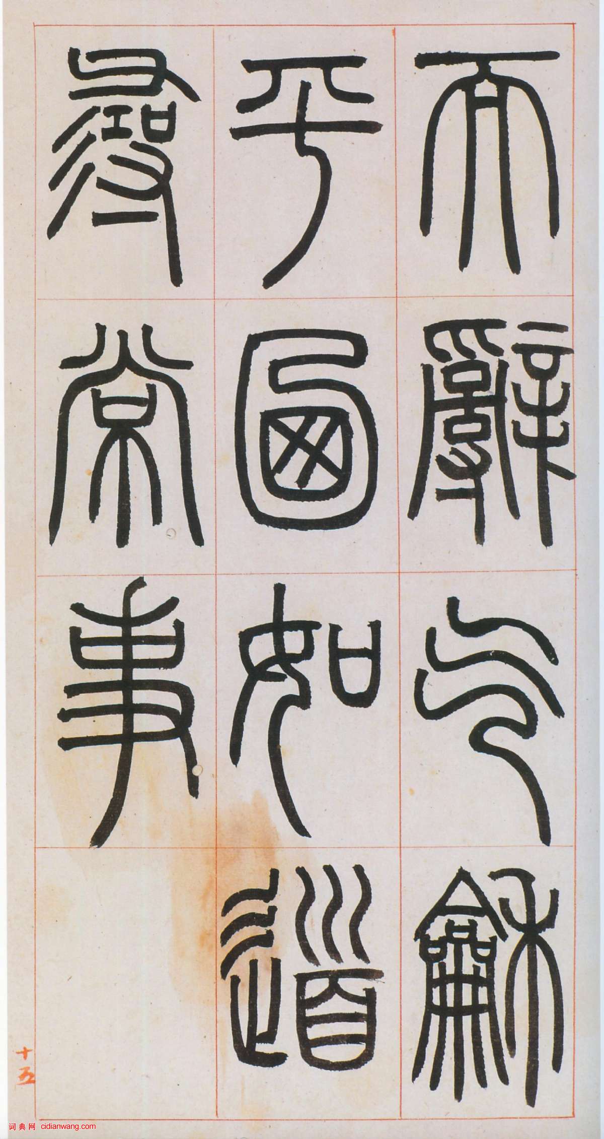 書法欣賞魏晉書法唐朝書法宋朝書法元朝書法明朝書法清朝書法近現代書法字典網>> 歷代書法>> 清朝>> 鄧石如《四體書冊之篆書八闥冊》(8)正文 鄧石如《四體書冊之篆書八闥冊》(8)作者:鄧石如 書體:篆書 首 頁 上一頁 3 4 5 6 7 8 9 10 11 12 下一頁 尾 頁鄧石如的相關書法作品:鄧石如《四體書冊》之《擇故山濱水地行草書冊》 鄧石如楷書《答謝中書書》 鄧石如《四體書冊》 鄧石如篆書《朱熹四齋銘》 鄧石如隸書《世慮全消四幅屏》 鄧石如行草《海龍天鶴五言聯》 鄧石如篆書《小窗幽記》節選 鄧石如《四體書冊》之《怪石長松篆書冊》 鄧石如篆刻作品欣賞 相關文章:吳鎮《草書題王右丞雪溪圖詩二首軸》 (草書)吳鎮《草書題王右丞雪溪圖詩二首軸》紙本 38×24.5cm 濟南市博物館藏釋文...鄧石如隸書《少學琴書冊》 (隸書)鄧石如《少學琴書冊》這本隸書冊這本隸書冊,作於嘉慶己未(1799)年。體勢值由雅...張瑞圖《行草書前赤壁賦》 (行草)張瑞圖《行草書前赤壁賦》捲雲母箋 上海韓天衡氏私人藏張瑞圖行草書《前赤壁賦》簡介...林散之《草書自作詩軸》 (草書)林散之《草書自作詩軸》紙本草書 96×34cm 1977年 馬鞍山林散之藝術館...趙孟頫《趵突泉詩》 (行書)趙孟頫《趵突泉詩》,紙本,行書,縱33.1cm,橫83.3cm。台北故宮博物院藏...東漢隸書《洛陽刑徒墓葬磚銘》 (隸書)刑徒墓磚,清末時就有出土。清《陶齋藏石記》和《恆農冢墓遺文》都曾有過記載。一 九...趙孟頫行書《洛神賦》 (行書)《洛神賦》卷 紙本,行書,縱29cm,橫220.9cm。北京故宮博物院藏全卷共8...董其昌行書《王維輞川詩冊》 (行書)明 董其昌書跡《王維輞川詩冊》欣賞,妙在天真(冊/紙本/27 x 11.7cm)...王鐸草書《臨王獻之省前書帖軸》之二 (草書)王鐸《臨王獻之省前書帖軸》1647年作 縱164cm 橫50cm 開封市博物館藏...黃庭堅行楷《砥柱銘卷》 (行楷)北宋大書法家黃庭堅(1045-1105),有一卷傳世墨跡《砥柱銘卷》,紙本行楷,...