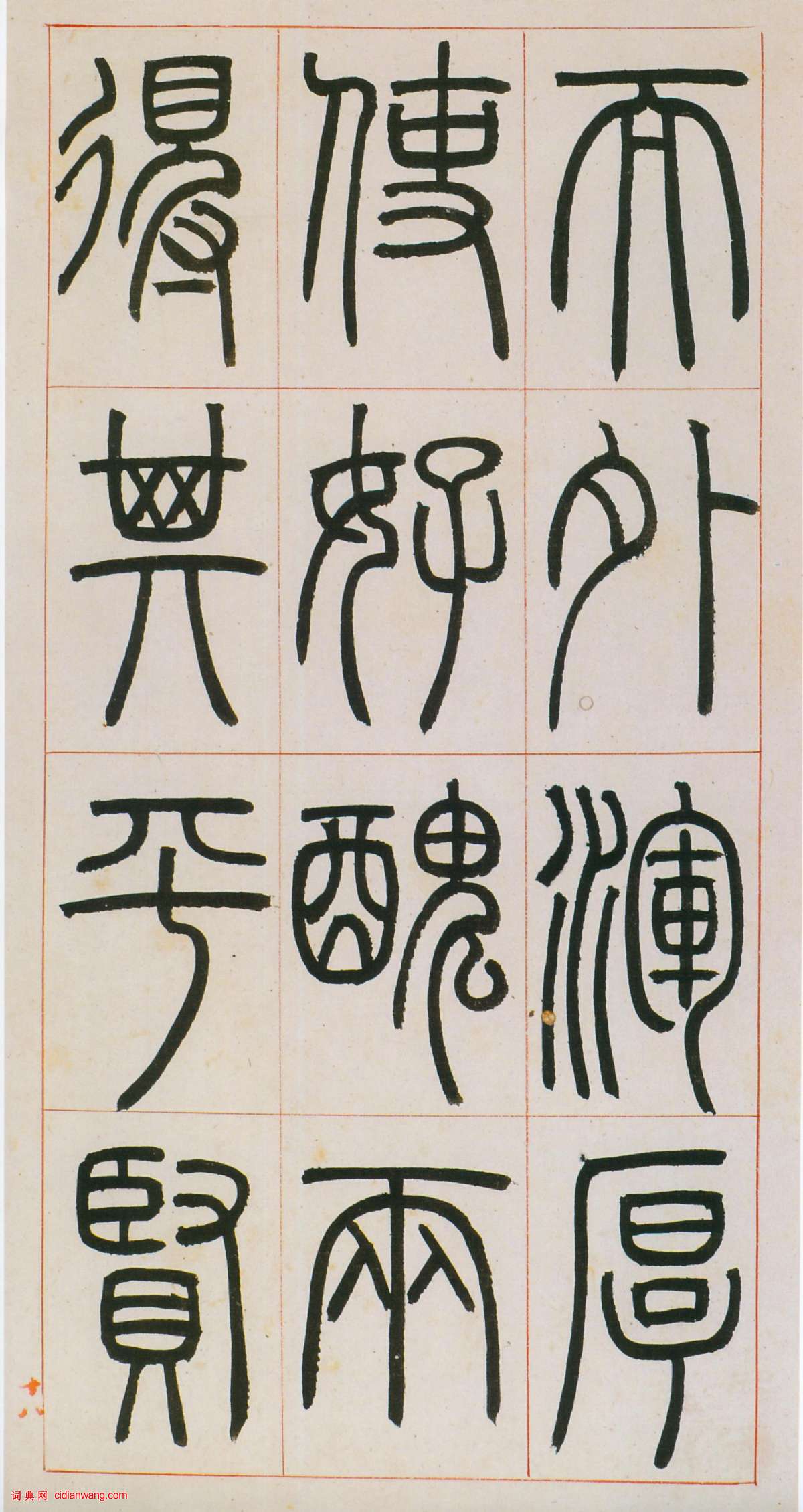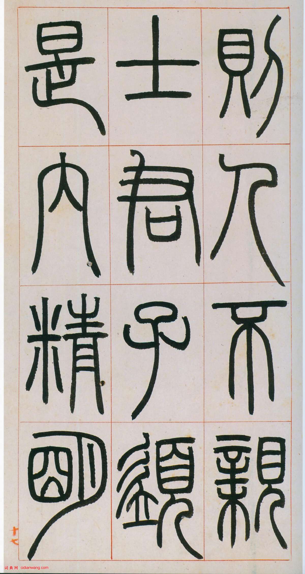 書法欣賞魏晉書法唐朝書法宋朝書法元朝書法明朝書法清朝書法近現代書法字典網>> 歷代書法>> 清朝>> 鄧石如《四體書冊之篆書八闥冊》(9)正文 鄧石如《四體書冊之篆書八闥冊》(9)作者:鄧石如 書體:篆書 首 頁 上一頁 3 4 5 6 7 8 9 10 11 12 下一頁 尾 頁鄧石如的相關書法作品:鄧石如篆書《小窗幽記》節選 鄧石如《四體書冊》之《擇故山濱水地行草書冊》 鄧石如篆書七言聯 鄧石如篆刻作品欣賞 鄧石如《四體書冊》之《雪齋清境楷書冊》 鄧石如篆刻作品欣賞 鄧石如《四體書冊》之《少學琴書隸書冊》 鄧石如《隸書五律》 鄧石如隸書《世慮全消四幅屏》 相關文章:文徵明《長者帖》 (楷書)文徵明《長者帖》,尺牘,楷書,故宮博物院藏。啟功《行書七言對聯》 (行書)釋文:一笑一念一清淨,一花一葉一如來。啟功(1912——2005),自稱“姓啟名...左宗棠行書《一室四時七言聯》 (行書)左宗棠《行書“一室四時”七言聯》 長沙博物館藏釋文:一室莊嚴妻子佛,四時經濟米鹽...楊凝式·盧鴻草堂十志圖跋 (行書)《盧鴻草堂十志圖跋》,紙本,行書。台北故宮博物院藏。後漢天福十二年丁未(947年...楊凝式《神仙起居法帖》 (草書)【釋文】神仙起居法。行住坐臥處,手摩脅與肚,心腹痛快時,兩手腸下踞,踞之澈膀腰,...金農漆書《高軒清福七言聯》 (隸書)金農漆書七言聯 立軸,1757年作 水墨紙本 遼寧省博物館藏釋文:高軒有松石間...黃道周草書《雨滯廟灣詩扇》 (草書)黃道周《雨滯廟灣詩扇》金箋草書 50.5×16.4cm 弘光元年(1645)...趙孟頫《雪岩和尚拄杖歌卷》 (行書)趙孟頫《雪岩和尚拄杖歌卷》,紙本,縱23.5cm,橫53.6cm。原卷25cm×...黃庭堅行書《小子相帖》 (行書)黃庭堅行書小子相帖 紙本 縱31.3厘米 橫33.3厘米上海博物館藏此帖行書七行...釋擔當·草書詩冊 (草書)【釋文】雨少秋收也較遲,此翁緩步欲何之。過橋不往城中去,正是農家酒熟時。擔當。【...