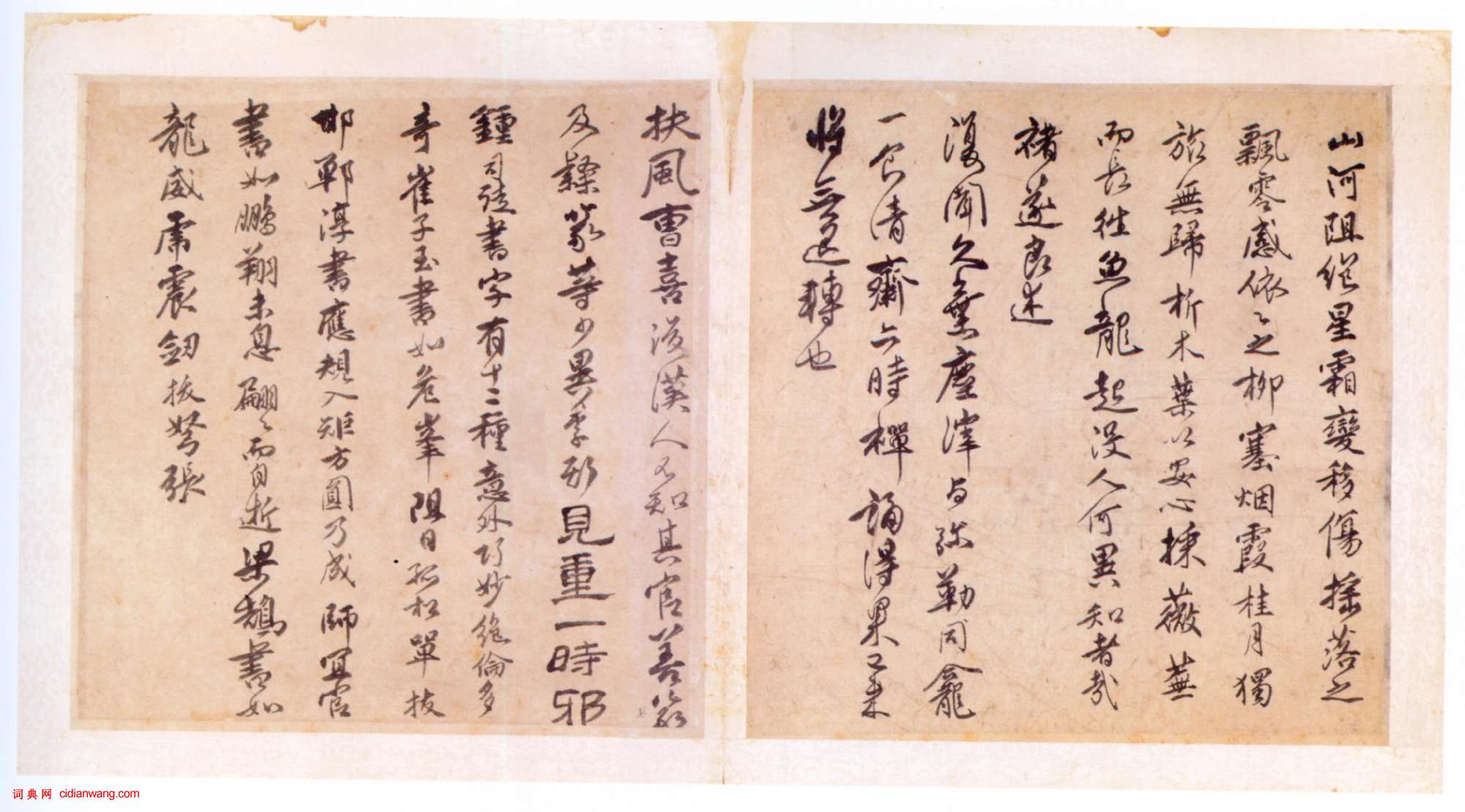 書法欣賞魏晉書法唐朝書法宋朝書法元朝書法明朝書法清朝書法近現代書法字典網>> 歷代書法>> 清朝>> 傅山《行草臨帖書冊》正文 傅山《行草臨帖書冊》作者:傅山 書體:行草 傅山 《行草臨帖書冊》冊 紙本 32cm×32cm×2×8 山西省博物院藏 釋文:【出處】作品掃描自《傅山書畫精品展》(嶺南美術出版社) 1 2 3 4 下一頁 尾 頁傅山的相關書法作品:傅山《草書祝錫予六十壽十二條屏》軸 傅山《草書李白秋登宣城謝脁北樓詩》 傅山《草書虹巢》詩軸 傅山《草書臨柳公權聖慈帖》 傅山《行草書七絕一首》 傅山《草書詩軸》 傅山小楷《五言詩》扇面 傅山《草書臨王羲之明府帖》 傅山《行書七言絕句立軸》 相關文章:褚遂良《伊闕佛龕碑》 (楷書)《伊闕佛龕碑》,唐岑文本撰文,褚遂良書。唐貞觀十五年立。楷書。此碑為摩崖刻石。其...伊秉綬行書《自作詩扇面》 (行書)伊秉綬《自作詩扇面》紙本行書 16.5×49cm 北京故宮博物院藏 釋文:恂恂...黃道周《草書自作五言詩軸》 (草書)黃道周《草書自作五言詩軸》 綾本草書 138.5×48.9cm 南通博物苑藏釋...王羲之小楷《黃庭經》 (小楷)《黃庭經》和《樂毅論》是王羲之小楷代表作品。《黃庭經》末署“永和十二年(356)...傅山《草書七絕詩軸》 (草書)傅山草書七絕詩軸,綾本,縱174厘米,橫53厘米。廣東省博物館藏。釋文:待更新(...唐寅行書自題《王蜀宮妓圖》 (行書)唐寅《王蜀宮妓圖》絹本設色,124.7×53.6cm 北京故宮博物院藏 此圖...康有為行書《錄焦氏易林句中堂》 (行書)康有為《錄焦氏易林句中堂》 紙本行書 110cm×54cm釋文:元利孔福,神...張瑞圖小楷《王無功答馮子華書》冊 (小楷)張瑞圖《小楷王無功答馮子華書》冊 灑金箋本 23.5×14.6厘米×15 崇...金農《為馬曰琯作畫詩》 (隸書)金農《為馬曰琯作畫詩》,紐約大都會博物館藏。伊秉綬隸書《江山冰雪五言聯》 (隸書)伊秉綬《隸書聯》此作品見於 中國嘉德2007秋季拍賣會估價:RMB 8...