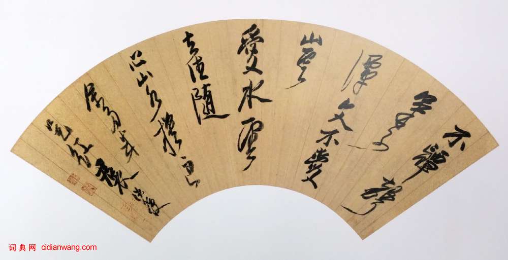 陳洪綬《行書不譚聲氣不譚文七絕詩》扇面 金箋 16.5×51cm 約順治二年(約1645)藏處不詳