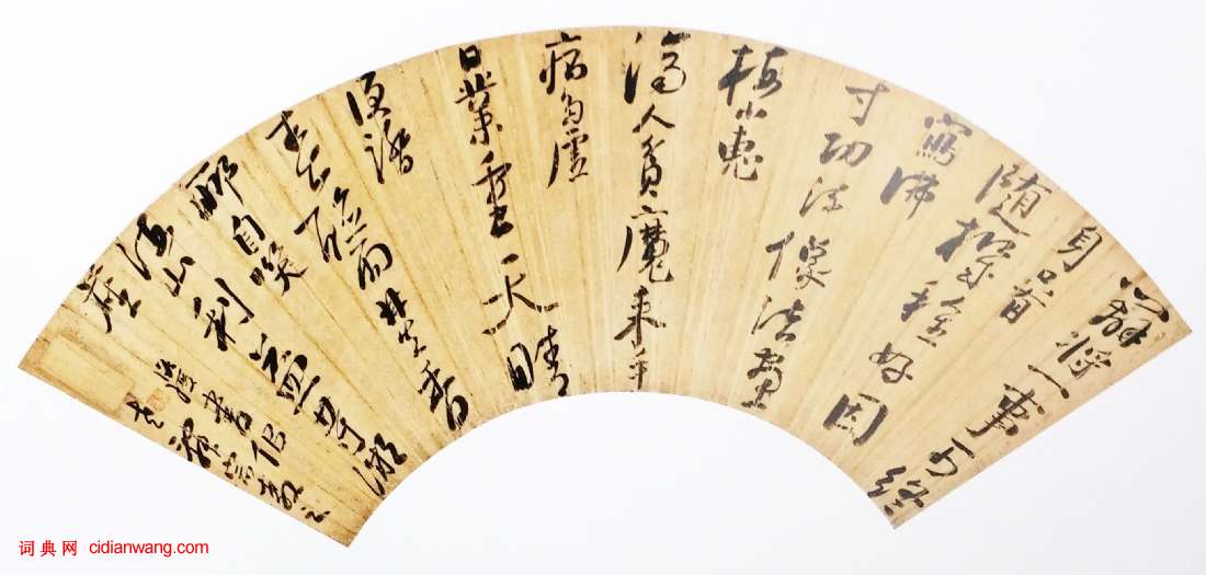 陳洪綬《行書辦將一事可終身七律詩》扇面 金箋 16.8×53.5cm 約崇禎十一年(約1638)廣西壯族自治區博物館藏