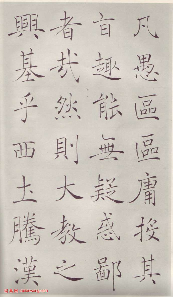 書法欣賞魏晉書法唐朝書法宋朝書法元朝書法明朝書法清朝書法近現代書法字典網>> 歷代書法>> 清朝>> 趙世駿楷書臨《褚遂良雁塔聖教序》(5)正文 趙世駿楷書臨《褚遂良雁塔聖教序》(5)作者:趙世駿 書體:楷書 首 頁 上一頁 1 2 3 4 5 6 7 8 9 10 下一頁 尾 頁趙世駿的相關書法作品:趙世駿《楷書五言詩四屏》軸 趙世駿楷書臨《褚遂良雁塔聖教序》 清 趙世駿臨《雁塔聖教序》 相關文章:沈曾植《行書蘇軾跋蔡帖扇》 (行書)沈曾植《行書蘇軾跋蔡帖扇》紙本行書 18×52cm 平湖市博物館藏 釋文:東坡...尤袤·跋李結《西塞漁舍圖》 (行書)尤袤跋李結《西塞漁舍圖》,縱40.7厘米。大都會美術館藏。沈尹默楷書《禁經永字八法》 (楷書)沈尹默楷書《禁經永字八法》釋文古人用筆之術,多於永字取法,以其八法之勢,能通一切...范仲淹《師魯帖》 (行楷)【釋文】仲淹頓首:李寺丞行,曾□□□□遞中,亦領來教承動止休勝。仲淹此中無□□,...褚遂良小楷《文皇哀冊》 (小楷)《文皇哀冊》在傳世的小楷作品中,久負盛名。相傳為真跡,但文稿後並無書人落款。據古...白蕉《書法十講》第五講 運筆問題 (不詳)今天所講的是關於運筆問題,本問題包括筆法、墨法兩項。筆法是談使轉;墨法是談肥瘦。...虞世南·破邪論序 (小楷)三井藏本安思遠藏本《破邪論序》,虞世南書,小楷。全文收入《虞秘監集》及歷代書法論...吳熙載《贈仲陶四兄隸書六言聯》 (隸書)吳熙載《贈仲陶四兄隸書六言聯》紙本 115.3×28cm×2 北京故宮博物院...長沙窯詩文壺 《懸釣之魚》題記壺 (行書)行書——青釉褐彩“懸釣之魚”題記壺(局部) 殘高18厘米 底徑11.9厘米 湖...劉墉《行書東坡遊記》 (行書)劉墉《行書東坡遊記》 鏡心 1797年作 水墨團花箋本 91×178cm 上...