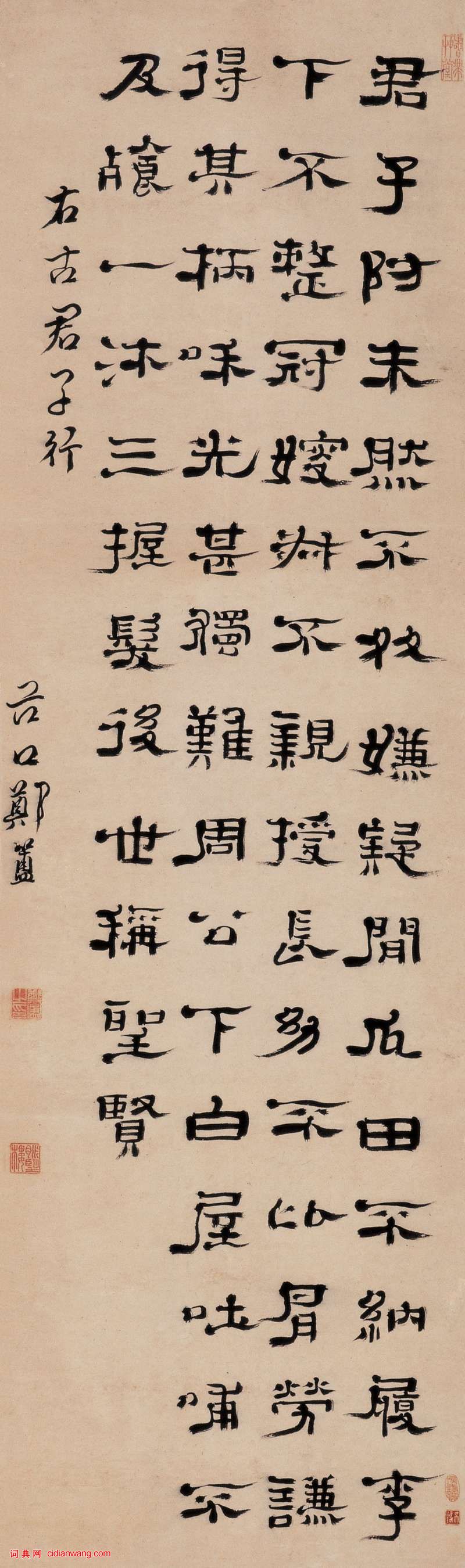 鄭簠《隸書古君子行五言詩》 水墨紙本 179.5×53cm(原為廣東五桂山房歐初私人藏品)