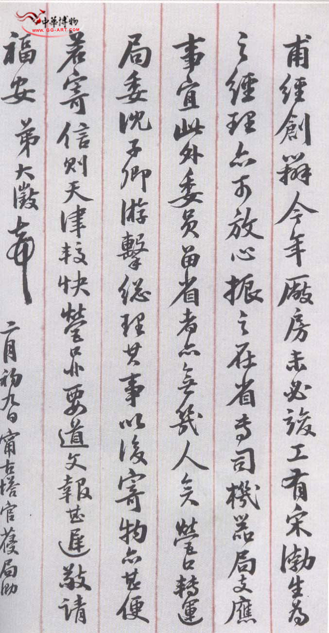 資源下載魏晉書法唐朝書法宋朝書法元朝書法明朝書法清朝書法近現代書法字典網>> 歷代書法>> 清朝>> 吳大澂行書《致大兄書札》(2)正文 吳大澂行書《致大兄書札》(2)作者:吳大澂 書體:行書 首 頁 上一頁 1 2吳大澂的相關書法作品:吳大澂《篆書白鶴泉銘》 吳大澂篆書《李公廟碑》 吳大澂行書手札 吳大澂篆書《臨段敦(簋)》 吳大澂《篆書知過論軸》 吳大澂行書《致大兄書札》 吳大澂篆書《集石鼓文樹古水流八言聯》 吳大澂散氏盤集字聯 吳大澂《行書手札》 相關文章:龍門二十品之《牛橛造像記》 (楷書)《牛橛造像記》,全稱《太和十九年十一月長樂王丘穆陵亮夫人尉遲為亡息牛橛造彌勒像記...鍾繇《宣示表》 (楷書)《宣示表》故宮博物院藏,梁武帝蕭衍譽道“勢巧形密,勝於自運”。筆法質樸渾厚,雍容...李世民行書《晉祠銘》 (行書)李世民《晉祠銘》全稱《晉祠之銘並序》,唐太宗撰文並書。碑高195厘米,寬120厘...文嘉·跋柳公權《蘭亭詩》 (行書)文嘉跋柳公權《蘭亭詩》,行書。北京故宮博物院藏。高鳳翰《草書詩軸》 (草書)高鳳翰《草書詩軸》 紙本草書 139×34.5cm 濟南市博物館藏釋文:大被生...王世貞·行書手札 (行書)王世貞行書手札。王守仁《上急缺地方官員疏手稿》 (草書)王守仁《上急缺地方官員疏手稿》40×119cm 嘉靖七年(1528)中國國家博...鄧石如隸書《琴伴衣無五言聯》 (隸書)鄧石如《琴伴衣無五言隸書聯》 立軸 水墨紙本 127.6×27.3cm×2 ...9副齊白石書法作品欣賞齊白石是舉世公認的藝術大師,他的詩、書、畫、印都是具有很高的造詣。他自評藝術成就...白蕉《書法十講》第六講 結構問題 (不詳)現在講到結構問題。結構就是講點劃、位置、多少、疏密、陰陽、動靜、虛實、展促、顧盼...