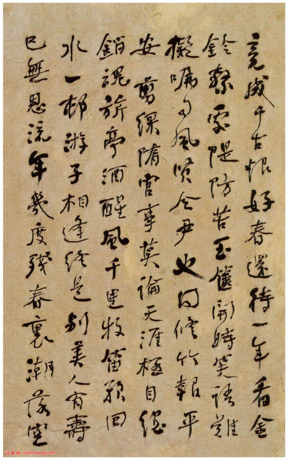 書法欣賞魏晉書法唐朝書法宋朝書法元朝書法明朝書法清朝書法近現代書法字典網>> 歷代書法>> 清朝>> 何紹基行書《詠落花七律十五章》(4)正文 何紹基行書《詠落花七律十五章》(4)作者:何紹基 書體:行書 首 頁 上一頁 1 2 3 4 5 下一頁 尾 頁何紹基的相關書法作品:何紹基行書《詠落花七律十五章》 何紹基行書《側身獨立七言聯》 何紹基行書《論書橫披》 何紹基楷書《留得相於七言聯》 何紹基隸書《四面一尊七言聯》 何紹基《行書錄李之儀跋語軸》 何紹基隸書臨《夏承碑》 何紹基行書《詩稿橫披》 何紹基《楷書“讀書延年”橫幅》 相關文章:黃庭堅行楷《送四十九侄詩》 (行楷)黃庭堅《送四十九侄詩》卷 紙本,行楷書,35.5×130.2cm 北京故宮博物...西晉隸書碑刻《齊太公呂望表》 (隸書)西晉隸書碑刻《齊太公呂望表》又稱《呂望表》,西晉太康十年(289)三月十九日刻。...林散之隸書臨《乙瑛碑》 (隸書)林散之隸書書法《臨乙瑛碑》,江蘇古籍出版社。此《乙瑛碑》臨本,系林老1972年臨...倪元璐《草書故人隔天風五言律詩軸》 (草書)倪元璐《草書故人隔天風五言律詩軸》綾本草書 169×40cm 山西博物院藏釋文...左宗棠《篆書四屏》 (篆書)左宗棠《篆書四屏》 湖南譚國斌當代藝術博物館藏釋文:公曰:嗟!我士聽!無嘩。予誓...吳熙載行書《節臨蘭亭序》扇面 (行書)吳熙載《節臨蘭亭序》扇面 紙本,18.0×52.3cm 日本東京國立博物館藏...魯迅行書《錄錢起歸雁贈長尾景和軸》 (行書)魯迅《錄錢起歸雁贈長尾景和軸》 182×49cm 1931 上海魯迅紀念館藏釋...王守仁《行書唐人秋閨思一首詩軸》 (行書)王守仁《行書唐人秋閨思一首詩軸》紙本行書 212×72.5cm 上海朵雲軒藏釋...貫雲石行書《跋趙孟頫瓮牖圖卷》 (行書)貫雲石《跋趙孟頫瓮牖圖卷》 縱27cm 台北故宮博物院藏 釋文:處以道,雖得天下...陸游·懷成都十韻詩 (行草)【釋文】放翁五十猶豪縱,錦城一覺繁華夢。竹葉春醪碧玉壺,桃花駿馬青絲鞚。鬥雞南市...