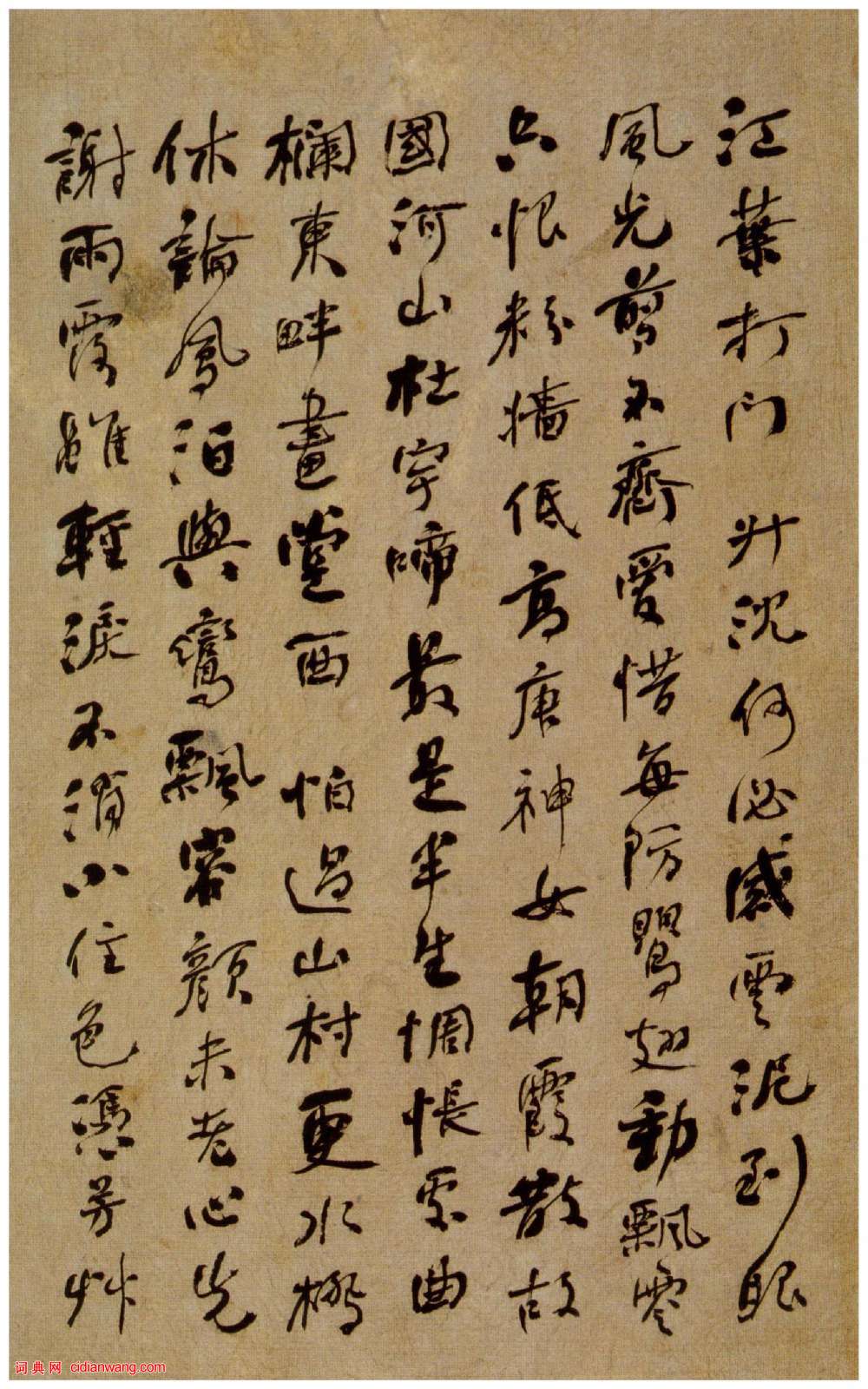 書法欣賞魏晉書法唐朝書法宋朝書法元朝書法明朝書法清朝書法近現代書法字典網>> 歷代書法>> 清朝>> 何紹基行書《詠落花七律十五章》(5)正文 何紹基行書《詠落花七律十五章》(5)作者:何紹基 書體:行書 首 頁 上一頁 1 2 3 4 5 何紹基的相關書法作品:何紹基楷書《為樂去古八言聯》 何紹基楷書《鵬鶚龍鸞五言聯》 何紹基《行書一亭幽室七言聯》 何紹基楷書《留得相於七言聯》 何紹基臨《張黑女墓誌》 何紹基行書《集爭座位帖字長聯》 何紹基篆書《銅鼎文屏》 何紹基行書《錄黃山谷語軸》 何紹基行書《蕉鹿蓴鱸七言聯》 相關文章:張瑞圖草書《李白月下獨酌》 (草書)張瑞圖 草書《李白月下獨酌》 紙本 北京故宮博物院藏【釋文】花間一壺酒,獨酌無相...李邕行楷《麓山寺碑》 (行楷)《麓山寺碑》亦稱《嶽麓寺碑》,李邕撰文並書,唐開元十八年(公元730年)立,在湖...曾熙楷書《漢正衡石五言聯》 (楷書)曾熙《楷書漢正衡石五言聯》紙本楷書 169.2×36.8cm×2 1921年...郭畀·青玉荷盤詩 (行書)【釋文】 太常金奉禮宴翰苑諸公,出青玉荷盤,色奇古。盤之上擎杯,象蓮蓬,下屈為柄...吳大澂《行書手札》 (行書)《行書手札》紙本行書 28.2×16.3cm 上海博物館藏此行書手札,通篇遣筆...沈曾植《楷書北窗東海七言聯》 (楷書)沈曾植《楷書北窗東海七言聯》紙本楷書 132.5×31.5cm×2 浙江省博...何焯《五律詩軸》 (行書)何焯五律詩軸,行書。釋文:今日明人眼,臨池好驛亭。叢篁低地碧,高柳半天青。稠疊多...文徵明行書《游西苑詩》兩幅 (行書)文徵明行書作品賞析《游西苑詩》,尺寸:175×84cm 此幅文徵明行書立軸筆意...北魏《馬鳴寺根法師碑》 (楷書)《馬鳴寺根法師碑》,亦稱《馬鳴寺碑》,北魏正光四年立於今山東省東安縣大王橋。碑文...西漢隸書《阜陽漢簡》 (隸書)《阜陽漢簡》為西漢初期簡冊。1977年在阜陽縣雙古堆1號漢墓中發掘出土。墓主夏侯...