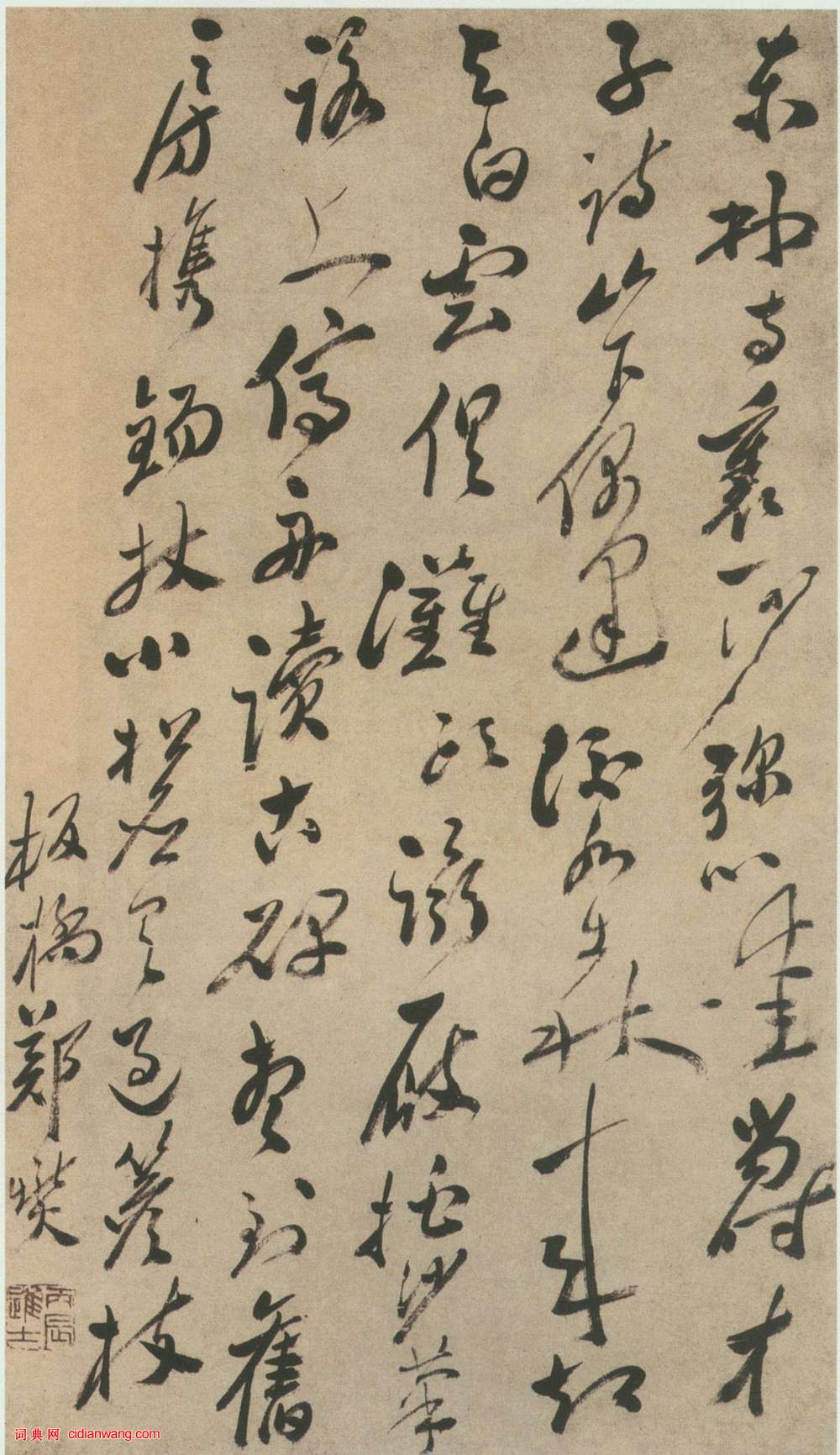 書法欣賞魏晉書法唐朝書法宋朝書法元朝書法明朝書法清朝書法近現代書法字典網>> 歷代書法>> 清朝>> 鄭燮《草書七律》正文 鄭燮《草書七律》作者:鄭燮 書體:草書 鄭燮《草書七律》 紙本 91×51cm 西泠印社藏資料來自《西泠印社百年社藏精品》(西泠印社出版社) 鄭燮的相關書法作品:鄭燮《草書七律》 鄭燮《行書劉禹錫送李僕射赴鎮詩軸》 鄭燮《楷書節錄山中與裴秀才迪書頁》 鄭燮《行書贈詩軸》 鄭燮《桃花源記》 鄭燮《行書自作唐多令詞扇》 鄭燮《行書梁武帝論書中堂》 鄭燮《行書錄東坡書札軸》 鄭燮《行書墨蘭苦茗七言聯》 相關文章:歐陽詢小楷《九歌》 (小楷)此宋石刻本不知何時埋入土中。清嘉慶二十三年河北豐潤縣重出。一面刻《九歌》小楷,一...李世民草書《屏風帖》 (草書)李世民草書《屏風帖》,宋嘉泰四年(1204)王允初刻於餘杭,元延祐三年(1316...陳鴻壽《行書蔡襄精茶帖軸》 (行書)陳鴻壽《行書蔡襄精茶帖軸》紙本行書 104.3×28cm 雲南省博物館藏釋...劉墉行書《幽人仙客七言聯》 (行書)劉墉《幽人仙客七言聯》紙本行書 127×27.5cm×2 台北故宮博物院藏釋...龔璛《教授帖》 (行書)【釋文】記事拜複錢翼之教授足下,客袁州龔璛敬封。璛記事拜復翼之教授足下。小婿子行...《洛神賦》原碑竟是這樣的! (楷書)《洛神賦十三行》原貌,分3部分:1、玉版《洛神賦》原刻石2、《洛神賦》原石&am...坐姿與執筆書法講座問題一:古人怎樣寫字古人用什麼坐具?二、古人當時怎樣坐?三、古人當時怎樣執筆?四...應均《四體書阮元句四條屏》 (四體)應均《四體書阮元句四條屏》 1937年 浙江永康萬泰美術館釋文: 浙東天一閣所藏...周天球《草書觀象台作七律詩扇》 (草書)周天球《草書“觀象台作”七律詩扇》(傳) 紙本金箋草書 17.5×54.0cm...徐渭《行草七言詩軸》 (行草)徐渭《行草七言詩軸》 紙本188.9×46.8cm 台北故宮博物院藏轉自《故...