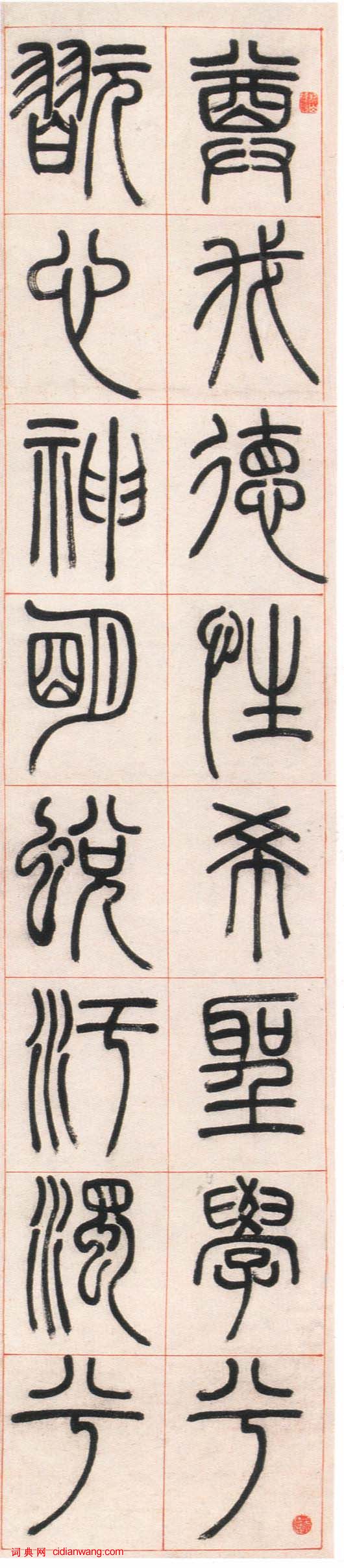 書法欣賞魏晉書法唐朝書法宋朝書法元朝書法明朝書法清朝書法近現代書法字典網>> 歷代書法>> 清朝>> 鄧石如篆書《朱熹四齋銘》正文 鄧石如篆書《朱熹四齋銘》作者:鄧石如 書體:篆書 鄧石如篆書《朱熹四齋銘》在上海崇源2002秋季拍賣會拍賣至52.8萬元 1 2 3 下一頁 尾 頁鄧石如的相關書法作品:鄧石如《四體書冊》之《雪齋清境楷書冊》 鄧石如篆刻作品欣賞 鄧石如《四體書冊》 鄧石如隸書《琴伴衣無五言聯》 鄧石如楷書《答謝中書書》 鄧石如《四體書冊之篆書八闥冊》 鄧石如《隸書五律》 鄧石如篆書《白氏草堂記六屏》 鄧石如篆書七言聯 相關文章:張瑞圖《行書鬱郁雙松老詩》 (行書)張瑞圖《行書鬱郁雙松老詩》紙本行書 釋文:鬱郁雙松老,何年雨後移。插竿拈直乾,持...陳澧《節錄城隍廟碑篆書軸》 (篆書)陳澧《篆書軸》 101.7x55.4 台北故宮博物院藏是軸節錄自唐乾元二年所刻《...王鐸《米芾行書天馬賦跋》 (小楷)王鐸《米芾行書天馬賦跋》,小楷。王鐸小楷自家模樣,《米芾行書天馬賦跋》似以更自由...唐順之《行草書杜甫詩卷》 (行草)唐順之《行草書杜甫詩卷》 紙本草書 32×992cm 嘉靖甲寅(1554年) ...齊白石最有趣的書法作品 (行書)送禮物者不報答 減畫價者不必再來 要介紹者莫要酬謝;凡我門客 喜尋師母請安問好者...啟功先生書法動態運筆圖啟功(1912——2005),姓愛新覺羅,字元白,滿族,居北京。2002年10月...張瑞圖《行書六言聯句》 (行書)張瑞圖《行書六言聯句》軸 紙本 356×99厘米 年代不詳 榮寶齋藏釋文:修竹...祝允明草書《自書詩卷》 (草書)祝允明《自書詩卷》 紙本草書,47.3×321.3cm 正德十五年(公元152...篆刻印章的習作與創作經過一定時間的臨摹後,對印章(尤指漢印)的基本特點和規律的認識有了初步掌握,就可...田英章異體字大全 (楷書)根據國家的提倡的漢字標準化,我們儘量不要使用異體字,包括在日常檔案書信中使用異體...