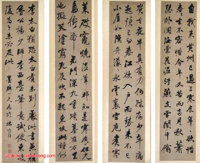 林則徐臨蘇軾《寒食帖》,紙本,四條屏,尺幅“121×27厘米×4 。