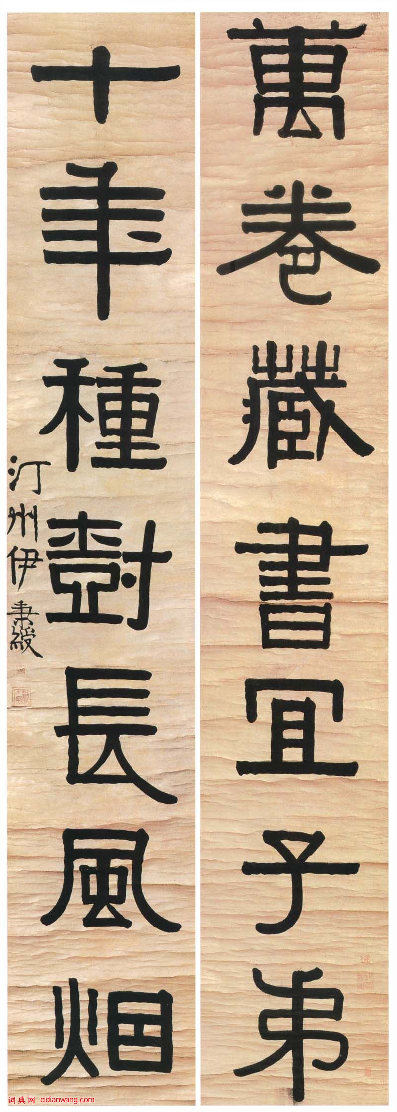 伊秉綬《隸書“萬卷十年”七言聯》灑金箋隸書 199×34.5cm×2 安徽省博物館藏