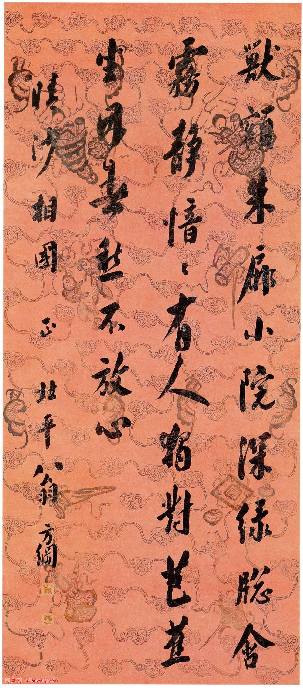 翁方綱《行書七絕詩軸》描金蠟箋 行書 167.3×72.9cm 上海博物館藏