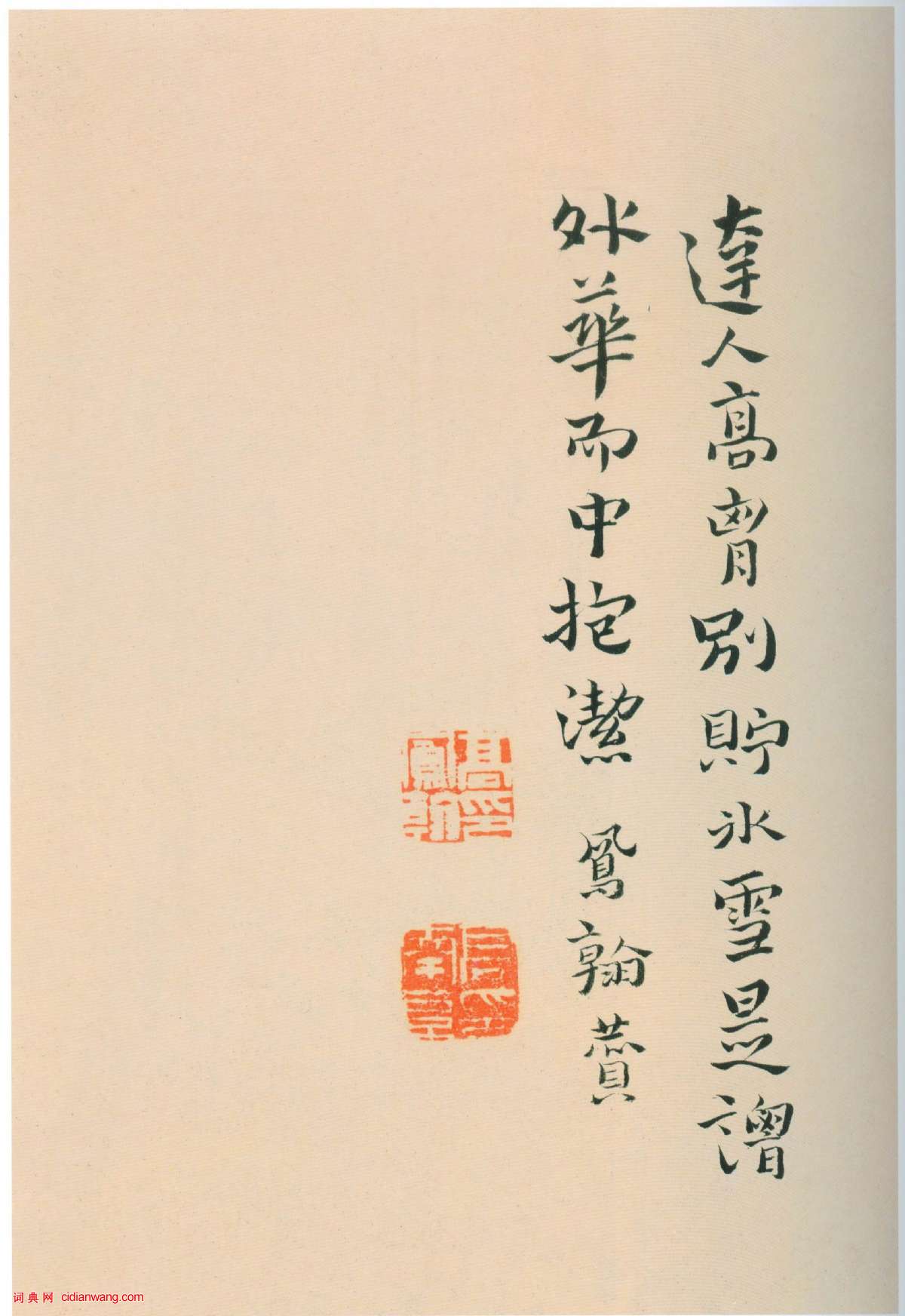 資源下載魏晉書法唐朝書法宋朝書法元朝書法明朝書法清朝書法近現代書法字典網>> 歷代書法>> 清朝>> 高鳳翰《行書自題牡丹冊》(3)正文 高鳳翰《行書自題牡丹冊》(3)作者:高鳳翰 書體:行書 首 頁 上一頁 1 2 3高鳳翰的相關書法作品:高鳳翰《行書張在辛赤壁賦書畫卷題跋》 高鳳翰《草書詩軸》 高鳳翰隸書自題《西亭春艷圖》 高鳳翰《草書詠荷詩》 高鳳翰《行書西亭睡起詩軸》 高鳳翰《行書自題牡丹冊》 高鳳翰《行書張在辛赤壁賦書畫卷引首》 高鳳翰《隸書聯捷詩軸》 高鳳翰《草書齋夜五律詩軸》 相關文章:米芾行書《天馬賦》並序拓本 (行書)米芾書《天馬賦》並序 釋文: 高君素收古畫。馬翹舉雄傑,感今無此馬,故賦。方唐牧...邢慈靜《行書五言詩》 (行書)邢慈靜生卒年代不詳。臨邑(今屬山東)人。邢侗之妹。號蒲團主人、蘭雪齋主。貴州左布...吳大澂《篆書知過論軸》 (篆書)吳大澂《篆書知過論軸》花箋紙本篆書 129.3×60.3cm 北京故宮博物院藏...褚遂良《陰符經》筆法解讀《大字陰符經》墨跡本局部《大字陰符經》墨跡本,96行,461字,傳唐代褚遂良書,...傅山《草書圓相寫魚字五言詩帖》 (草書)傅山 《草書圓相寫魚字五言詩帖》軸 絹本 181.5cm×47.5cm 山...陳淳《草書千字文》 (草書)陳淳《草書千字文冊》紙本 草書 32×16.5cm×17頁 嘉靖十七年(15...沈周·自題《為祝淇作山水軸》 (行書)沈周自題《為祝淇作山水軸》,行書,絹本。浙江省博物館藏。孫岳頒《行書詩軸》 (行書)孫岳頒《行書詩軸》 水墨綾本 161.3×46.5cm(原為廣東五桂山房歐初私...趙孟頫行書跋《韓滉五牛圖卷》 (行書)元代趙孟頫行書題跋《韓滉五牛圖卷》,北京故宮博物院藏。釋文:右唐韓晉公五牛圖,神...蘇軾行書《黃州寒食詩帖》 (行書)《黃州寒食詩帖》,紙本,25 行,共129字,是蘇軾行書的代表作。這是一首遣興的...