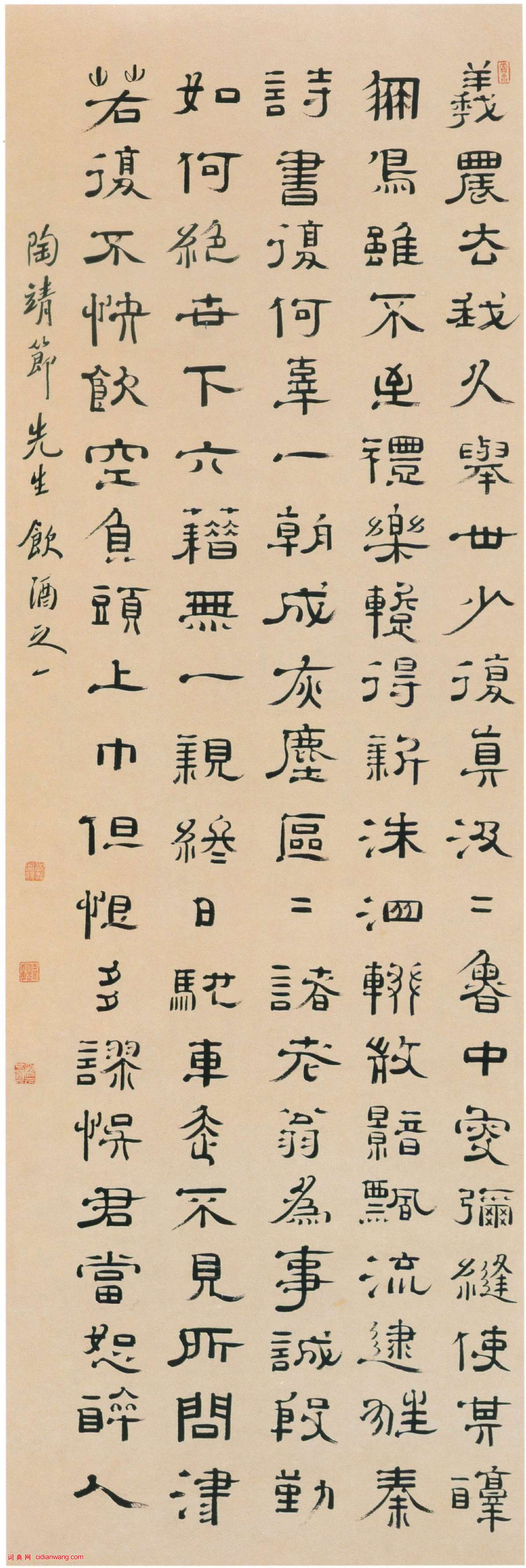 高翔《隸書陶潛飲酒詩軸》 紙本隸書 154.3×50.7cm 上海博物館藏