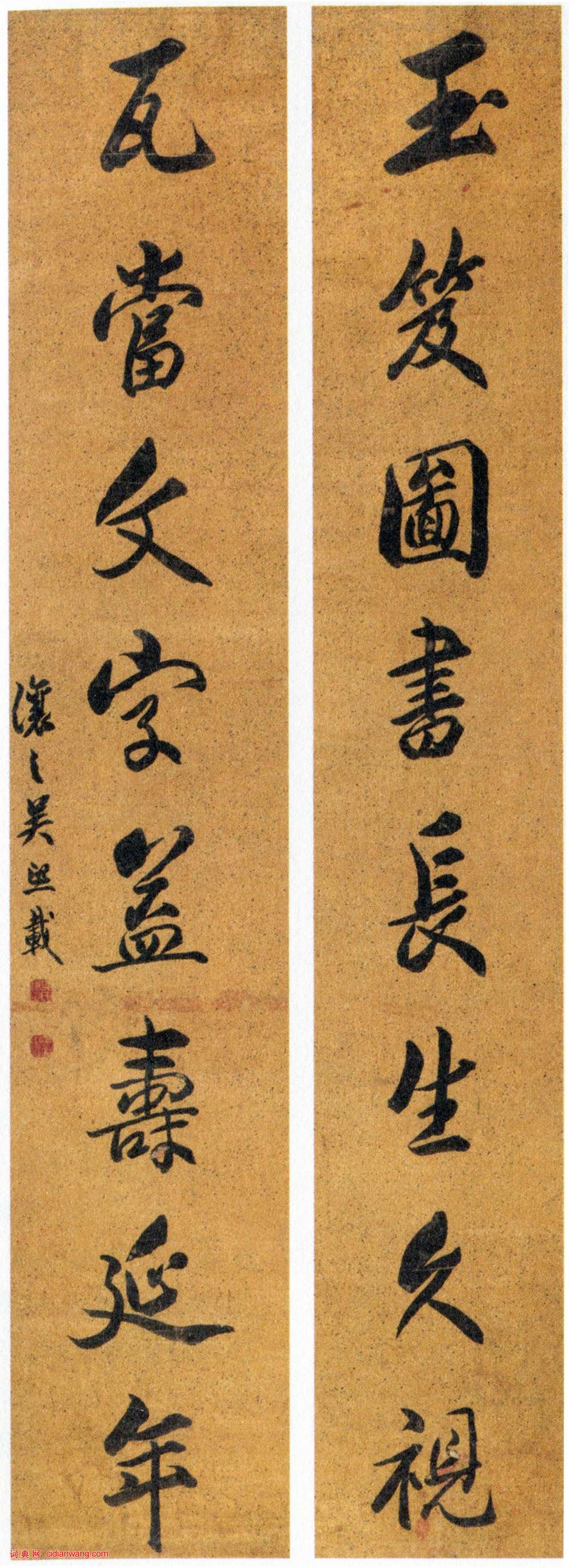 包世臣《行書玉笈瓦當八言聯》灑金箋本行書 152×28.5cm×2 西泠印社藏