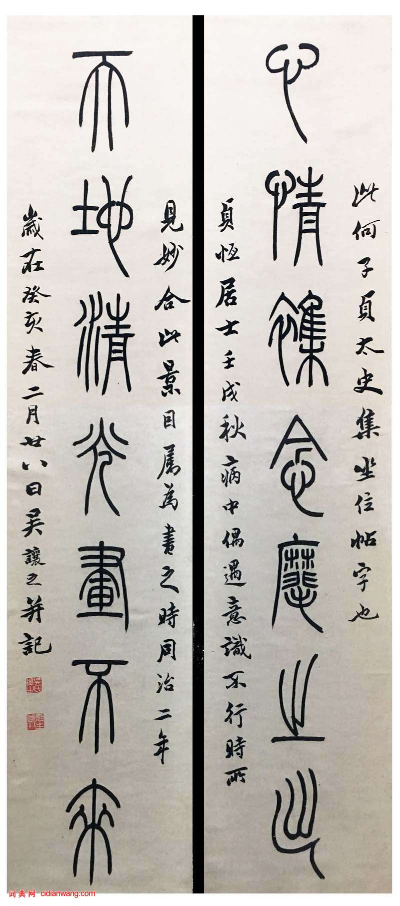 吳熙載《篆書心情天地七言聯》紙本篆書 127.5×27.5cm×2 1863年 西泠印社藏