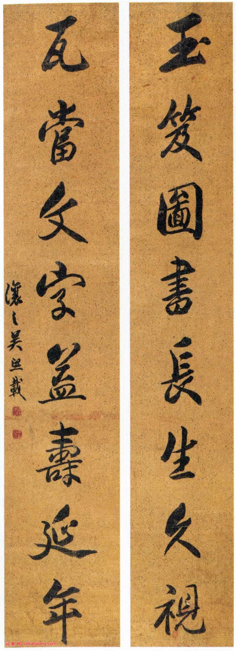 吳熙載《行書玉笈瓦當八言聯》灑金箋本行書 152×28.5cm×2 西泠印社藏