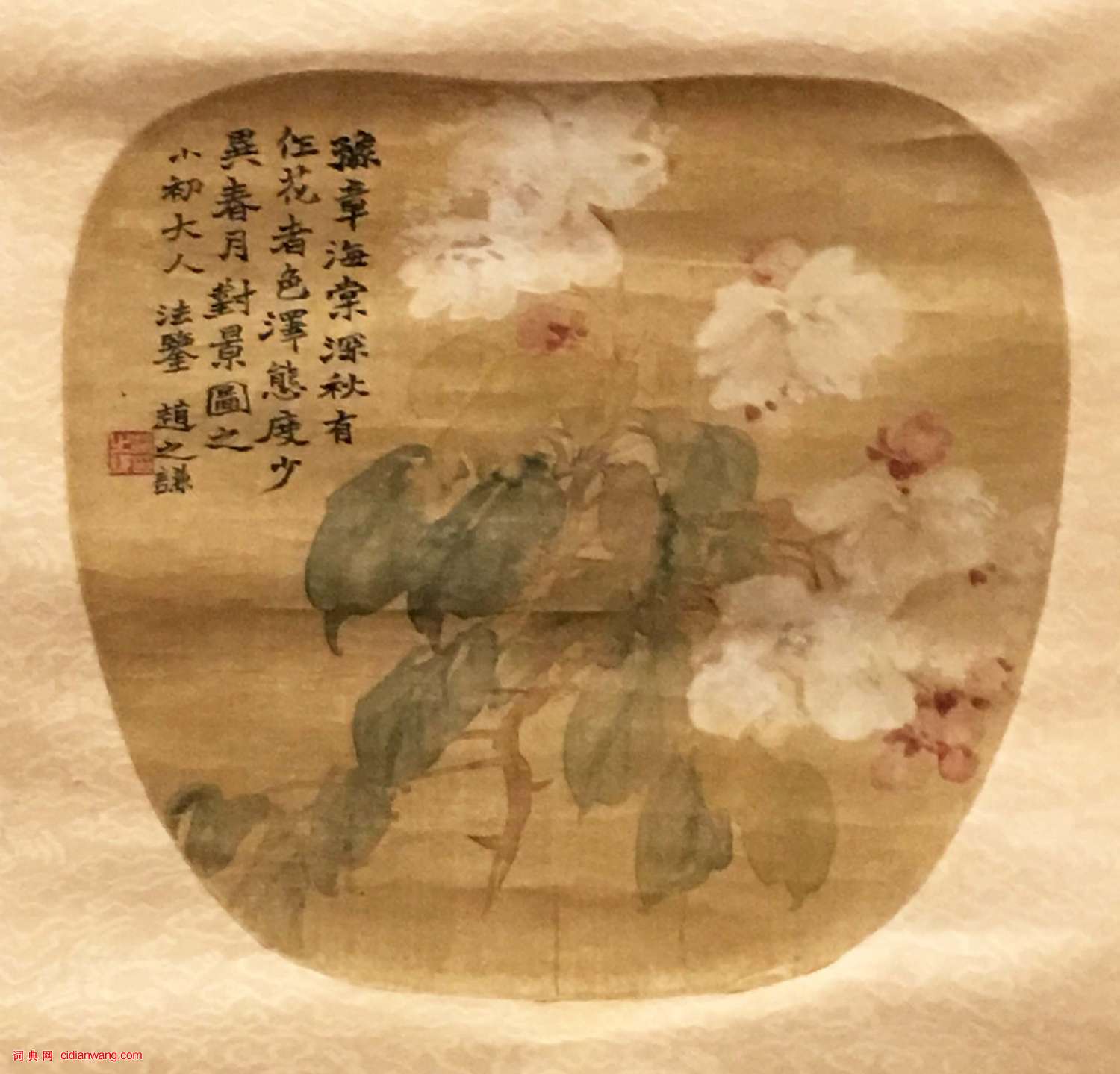 趙之謙《書畫扇面合景軸——折枝海棠扇面》絹本 直徑23cm 浙江省博物館藏