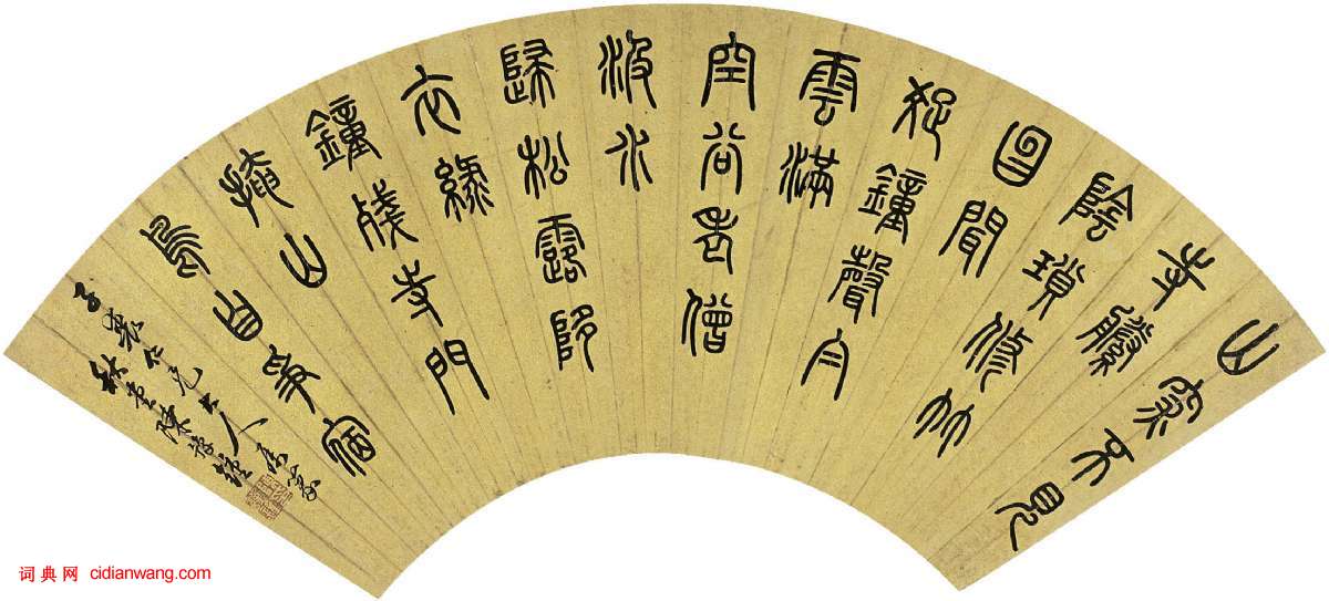 陳豫鍾《篆書元人陳孚“煙寺晚鐘”五言詩扇》
