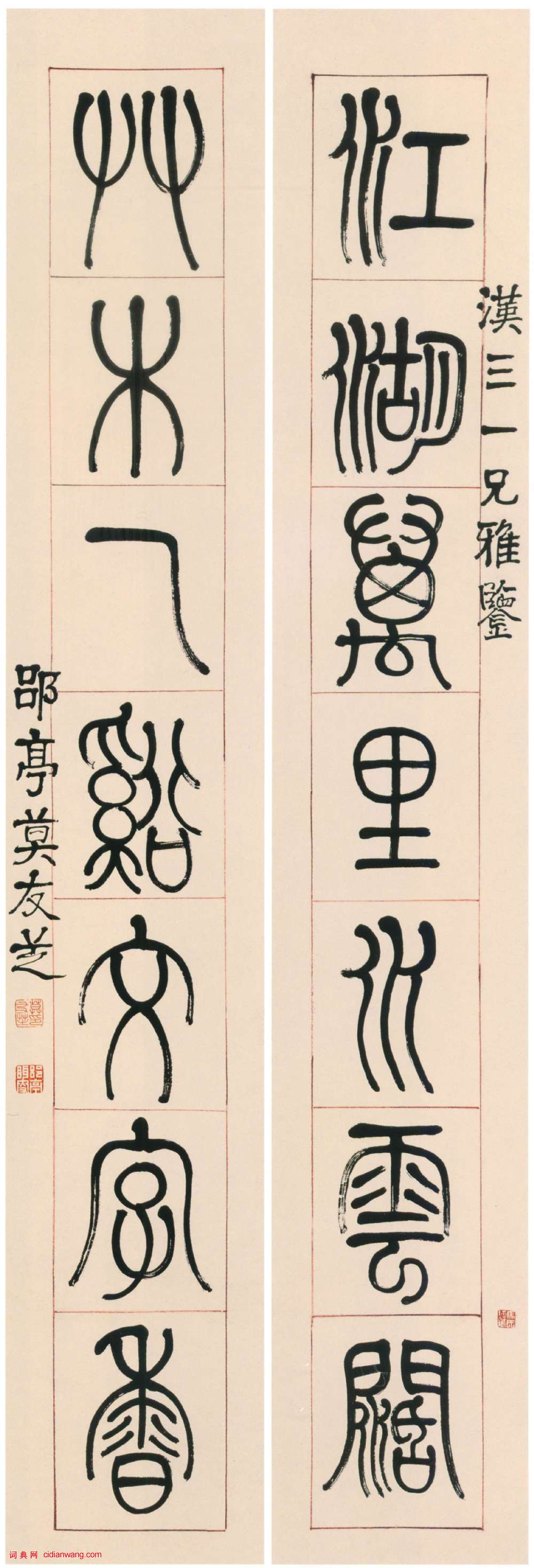莫友芝《篆書江湖草木七言聯》 紙本篆書 159×26.5cm×2 貴州省博物館藏