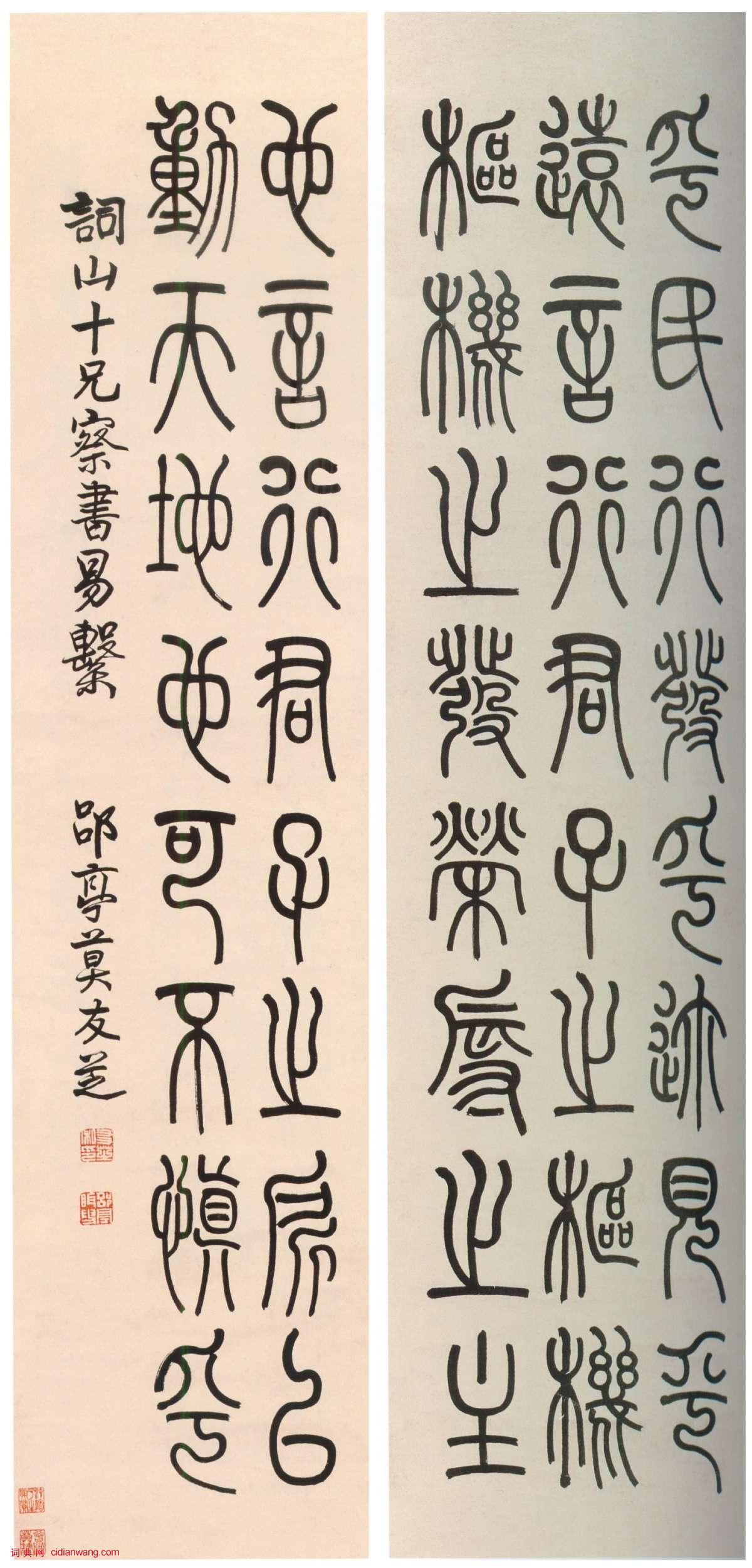 書法欣賞魏晉書法唐朝書法宋朝書法元朝書法明朝書法清朝書法近現代書法字典網>> 歷代書法>> 清朝>> 莫友芝《篆書易經繫辭屏》正文 莫友芝《篆書易經繫辭屏》作者:莫友芝 書體:篆書 莫友芝《篆書易經繫辭屏》 紙本篆書 133×30cm×4 深圳市博物館藏釋文:子曰:“君子居其室,出其言善,則千里之外應之,況其邇者乎?居其室,出其言不善,則千里之外違之,況其邇者乎?言出乎身,加乎民;行發乎邇,見乎遠。言行,君子之樞機。樞機之發,榮辱之主也。言行,君子之所以動天地也,可不慎乎!” 款署:詞山十兄察書易系,郘亭莫友芝。 鈐印:友芝私印(白文)、郘亭眲叟(白文)【資料來源】《中國法書全集》-18-清3(文物出版社)莫友芝的相關書法作品:莫友芝《節錄老子語篆書四條屏》 莫友芝《篆書耀此納我八言聯》 莫友芝《篆書江湖草木七言聯》 莫友芝《跋王居士磚塔銘》 莫友芝《隸書執恭登高八言聯》 莫友芝《篆書易經繫辭屏》 莫友芝《篆書龢神春雲八言聯》 相關文章:200對經典書家對聯給大家分享中國雅致集聯200條,書法創作必用、實用、常用。收藏好!序號上句下句出...陳淳·《荷花小鳥圖》題跋 (行書)陳淳《荷花小鳥圖》題跋,水墨紙本。鄧宇行書《題米友仁瀟湘奇觀圖卷》 (行書)鄧宇《題米友仁瀟湘奇觀圖卷》 縱19.8cm 行書 北京故宮博物院藏鄧宇字子方,...王獻之·洛神賦十三行 (楷書)玉版十三行初拓本 柳公權十三行 【釋文】晉中(書...吳雯《行書送徐道沖之粵東五言詩軸》 (行書)吳雯《行書送徐道沖之粵東五言詩軸》紙本行書 140×41cm 山西省博物院藏 ...米芾·逃暑帖 (行書)【釋文】芾頓首再啟。芾逃暑 山,幸茲安適。人生幻法,中□ 為虐而熱而惱。諺以貴□...施閏章草書《寓松屋漫題立軸》 (草書)施閏章《寓松屋漫題立軸》紙本草書 180.1×43cm 上海博物館藏釋文:鳥聊...吳榮光·跋周東卿《魚樂圖》 (行書)吳榮光跋周東卿《魚樂圖》,縱30.8厘米,現藏於美國大都會美術館。劉墉《行書七絕軸》 (行書)劉墉《行書七絕軸》紙本行書 104×53cm 山西省博物館藏釋文:桑林伐鼓酒如...教你怎么製作拓片,製作拓片方法拓片,指將碑文石刻、青銅器等文物的形狀及其上面的文字、圖案拓下來的紙片。是我國一...