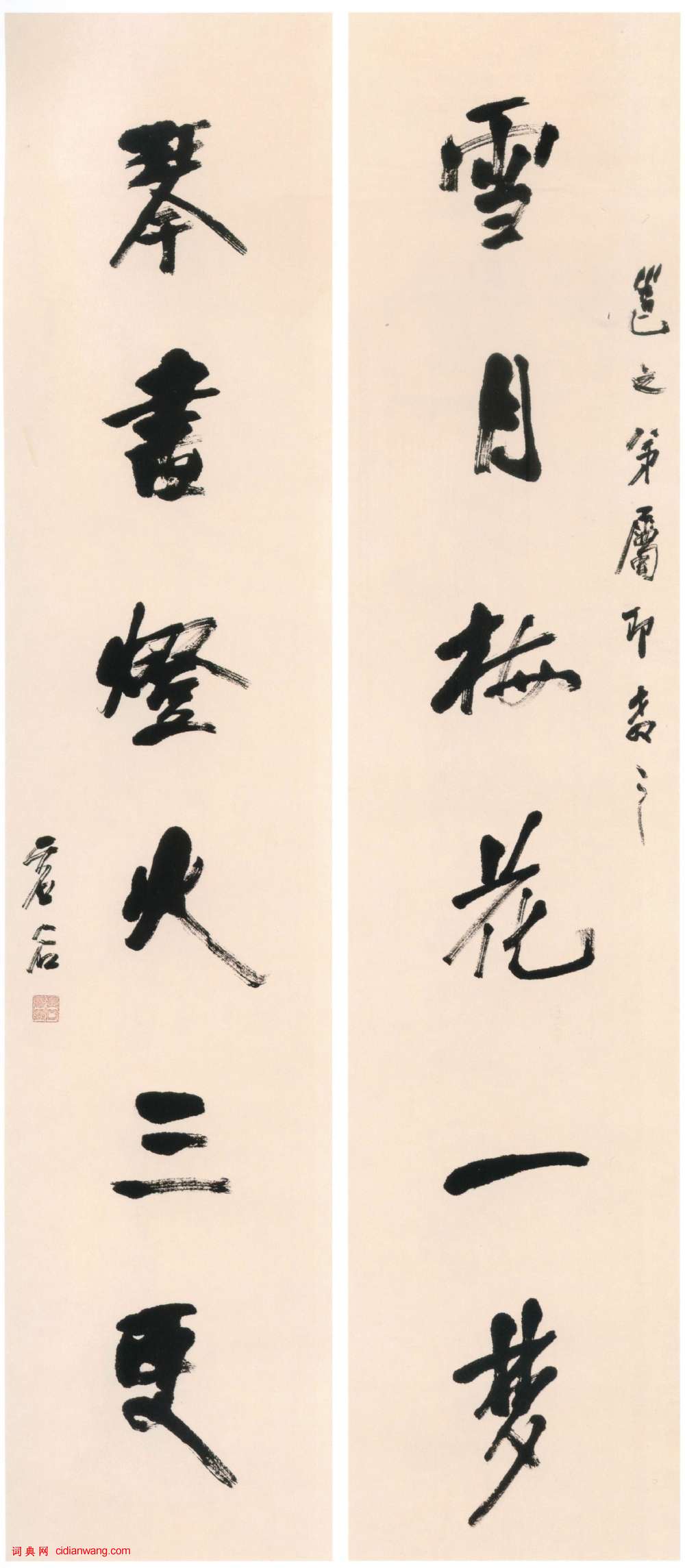 書法欣賞魏晉書法唐朝書法宋朝書法元朝書法明朝書法清朝書法近現代書法字典網>> 歷代書法>> 清朝>> 虛谷《行書六言聯》正文 虛谷《行書六言聯》作者:虛谷 書體:行書 虛谷《行書六言聯》紙本行書 132×28.7cm×2 上海博物館藏釋 文:雪月梅花以夢,琴書燈火三更。 款署:邕之弟屬即教之。虛谷。 【資料來源】《中國法書全集》-17-清2(文物出版社)相關文章:范成大草書《雪後帖》 (草書)范成大《雪後帖》紙本 31.9×51.3cm 台北故宮博物院藏 范成大《雪後帖...鮮于樞行草《醉時歌等唐人詩十二首》 (行草)鮮于樞冊頁行書《醉時歌等唐人詩十二首》,台北故宮博物院藏。《醉時歌等唐人詩十二首...長沙窯詩文壺《一別行千里》 (行草)行草——青釉褐彩“一別行千里”詩文壺(局部) 高25.1厘米 口徑11.1厘米 ...米芾草書《論草書帖》 (草書)米芾 《論草書帖》 紙本 草書 縱24.7厘米 橫37厘米 台北故宮博物院藏 米...懷素草書《藏真律公二帖》 (草書)懷素草書藏真律公二帖 縱140厘米,橫49厘米 陝西西安碑林 石為豎方形,宋元...斷臂人張文佑書法欣賞 (行書)張文佑,字德輔,號月台經生。1970年生,河南襄城人,中國書法家協會會員。張文佑...何紹基楷書《為樂去古八言聯》 (楷書)何紹基《楷書“為樂去古”八言聯》釋文:為樂及時令德無極,去古不遠直道在斯。蝯叟。...釋擔當《草書扇面》 (草書)【釋文】過了溪橋遠市城,千峰一室足生平。亂雲雜霧都消盡,惟有紫香入腦清。擔當。釋...文徵明行草《西苑詩卷》 (行草)文徵明《西苑詩卷》局部(1554) 紙本 行草書 縱28.4厘米 橫447.4厘...曾熙《行書作德發言七言聯》 (行書)曾熙《行書作德發言七言聯》紙本行書 136×32.5cm×2 1921年作 ...