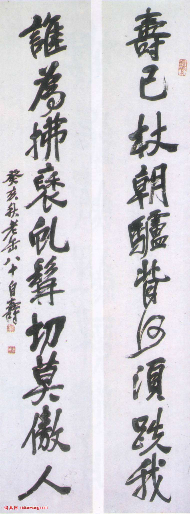 吳昌碩《行書八十自壽聯》紙本行書 144.3×34.3cm×2 1923年 浙江省博物館藏