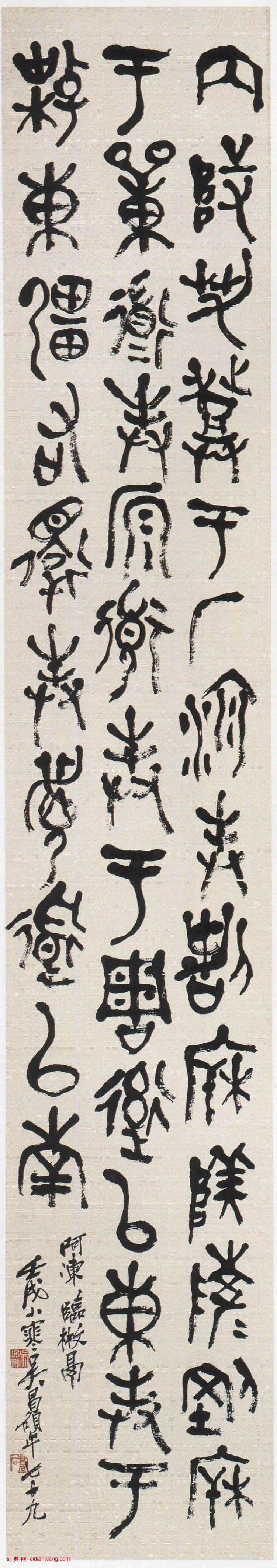 吳昌碩《篆書臨散氏盤銘軸》紙本篆書 149.8×25.5cm 1922年 浙江省博物館藏