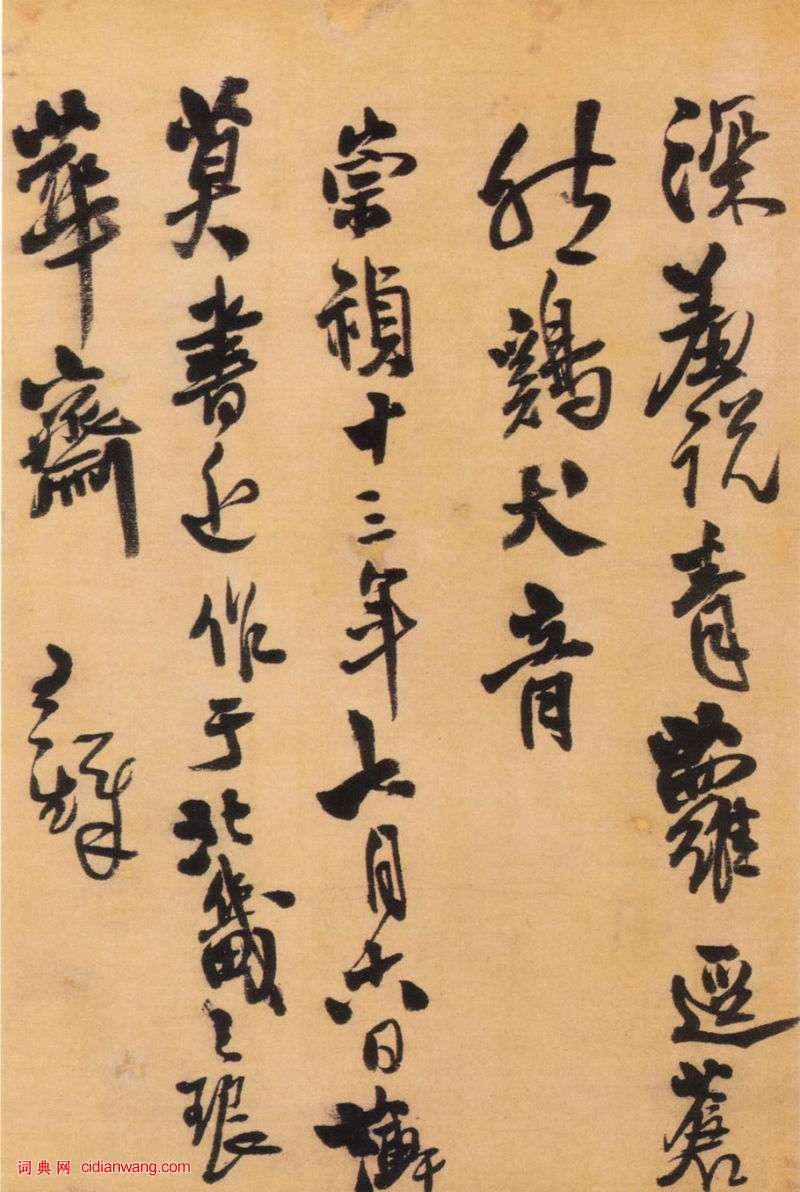 資源下載魏晉書法唐朝書法宋朝書法元朝書法明朝書法清朝書法近現代書法字典網>> 歷代書法>> 清朝>> 王鐸行書《七月寫懷五律詩》卷(4)正文 王鐸行書《七月寫懷五律詩》卷(4)作者:王鐸 書體:行書 首 頁 上一頁 1 2 3 4王鐸的相關書法作品:王鐸行書《杜甫戲呈楊四員外綰詩軸》 王鐸草書《臨王獻之省前書帖軸》 王鐸·跋米芾《行書三札卷》 王鐸《行書嵩縣詩軸》 王鐸《行草詩稿墨跡十二頁》 王鐸草書《赤箭帖》 王鐸草書《臨王獻之省前書帖軸》之二 王鐸行草《臨閣帖》卷 王鐸楷書《一覺庵銘》 相關文章:東漢隸書《尚府君殘碑》 (隸書)《尚府君殘碑》拓片即《尚博碑》,全稱《漢甘陵相尚府君碑》,又稱《甘陵相碑》。隸書...傅堯俞·蒸燠帖 (行楷)傅堯俞《蒸燠帖》,紙本,行楷書,縱26.3厘米,橫17.3厘米。《蒸燠帖》是傅堯...王鐸·跋米芾《行書三札卷》 (行書)王鐸跋米芾《行書三札卷》,故宮博物院藏,為王鐸關於觀賞此卷與友人的通信一封。米芾行書《天馬賦》 (行書)在米芾傳世的作品中,《天馬賦》被康熙譽為“前無古人”,該作品淋漓痛快,雋雅奇變,...陳師曾《楷書臨王饒安碑軸》 (楷書)陳師曾《楷書臨王饒安碑軸》 134×34cm 紙本 上海博物館藏釋...沈尹默行書《歐陽修寶劍詩軸》 (行書)沈尹默《行書歐陽修寶劍詩軸》紙本行書【資料來源】《海派代表書家系列作品集——沈尹...東漢隸書《陽嘉殘碑》 (隸書)陽嘉殘碑,東漢陽嘉二年刻,清光緒元年出土於曲阜,碑陽存10行,碑陰存3列。用筆精...蘇軾行書《渡海帖》 (行書)蘇軾《渡海帖》,行書,元豐三年(1100),紙本,28.6X40.2 cm 台北...唐寅行書題《事茗圖卷》 (行書)唐寅 《事茗圖》卷,明,唐寅作,紙本,設色,縱31.1cm,橫105.8cm。 ...惲壽平·跋錢榖《桃花源圖》 (行書)惲壽平跋錢榖《桃花源圖》卷,縱37cm。美國克利夫蘭美術館藏。