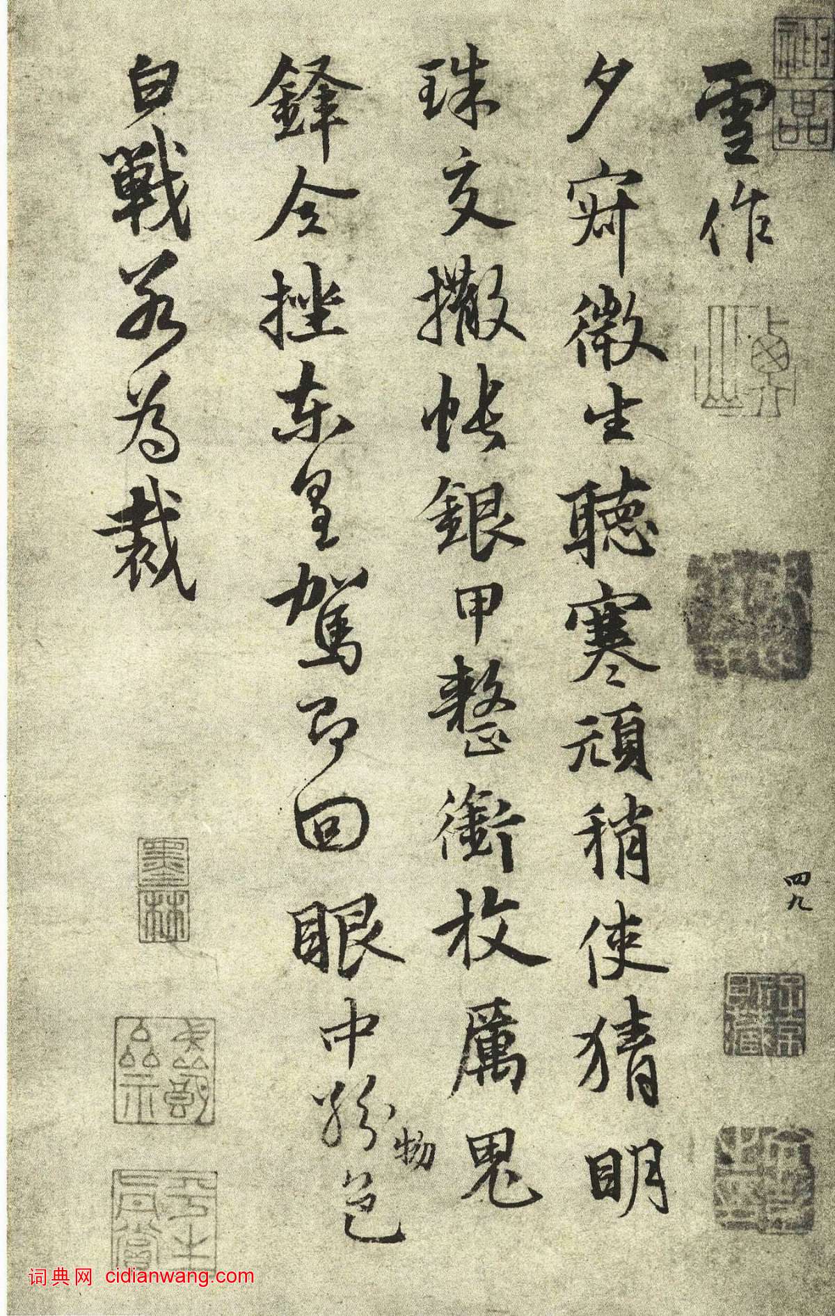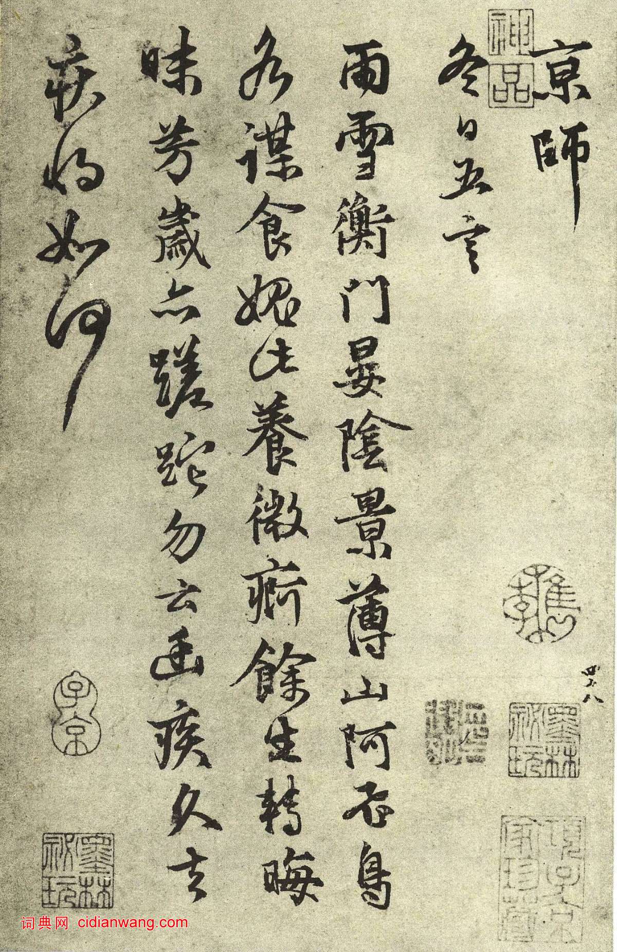 資源下載魏晉書法唐朝書法宋朝書法元朝書法明朝書法清朝書法近現代書法字典網>> 歷代書法>> 遼金元>> 張雨行書《自書雜詩冊》(5)正文 張雨行書《自書雜詩冊》(5)作者:張雨 書體:行書 首 頁 上一頁 1 2 3 4 5 6 7 8 9 10 下一頁 尾 頁 全文2017-3-5 14:49:27 張雨的相關書法作品:張雨《賦聽泉亭詩札》 張雨行書《自書詩冊》 張雨《九鎖山小楷詩卷》 張雨行書《上閒止詩卷》 張雨·發蛻庵詩札 張雨行書《鶴巢詩卷》 張雨《為子中書詩軸》 張雨·次韻天鏡上人送柑詩帖 張雨行楷《鐵琴詩卷》 相關文章:吳昌碩《篆書小花園橫幅》 (篆書)吳昌碩《篆書小花園橫幅》紙本篆書 46×185cm 1909年 西泠印社藏 釋...程南雲篆書《題送陸游自書詩卷》 (篆書)程南雲《題送陸游自書詩卷》紙本篆書 遼寧省博物館藏文徵明行書《月夜觀玉蘭》立軸 (行書)文徵明《行書月夜觀玉蘭之作詩軸》絹本行書 128.3×64.5cm 湖南省博...趙孟頫《蘭亭序十三跋》殘本 (行書)趙孟頫《蘭亭序十三跋》殘本(選頁)紙本冊頁 33.2X24.4cm 趙孟頫於至大...楊守敬行書《錄蘇軾“贈劉景文”詩軸》 (行書)楊守敬《錄蘇軾“贈劉景文”詩軸》紙本行書 146×40cm 1913年作 四川...傅山楷書《竹雨茶煙聯》 (楷書)傅山《竹雨茶煙聯》軸 楷書 紙本 225×44cm×2 山西晉祠博物館藏 ...小楷《靈飛經》筆法講解1、平切橫 起筆時帶有一定的速度切入紙面,產生左尖的效果。筆尖繼續向右漸按運行(...鍾紹京小楷《初拓靈飛經》清拓本 (小楷)初拓靈飛經 ,鍾紹京書. 翻刻. [China : s.n., 淸, betwe...文徵明小楷《太上老君說常清淨經》 (小楷)文徵明小楷《太上老君說常清淨經》、《老子列傳》合冊,紙本,縱20.9厘米,橫11...黃道周行楷《日上東城扇》 (行楷)黃道周《日上東城扇》紙本 行楷 35×63.5cm 台北故宮博物院藏