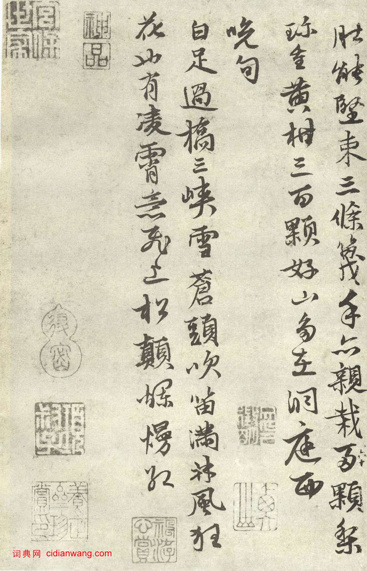 釋文:《答楊廉夫二首》: 弄水摘花春可憐,風雨倦尋茅步船。我家南塢有靈石,龍井西頭無杜鵑。 野雀亂雛畏人過,弱委柳地趣蠶眼。子云胡為甘寂寞,後世何人知太玄。 黃篾樓中惟飲酒,樓下長溝鳧雁多。灣頭橋斷浮青草,湖面風來生白波。饞奴競煮脫硼筍,老魚戲唼如錢荷。詔書寬大到海角,河北飢氓爭倒戈。《書摘阮圖四言>長松結陰芳草如莽丘中微吟有天際想被阮者鹹發我撫掌一鳥不鳴衆山俱響...