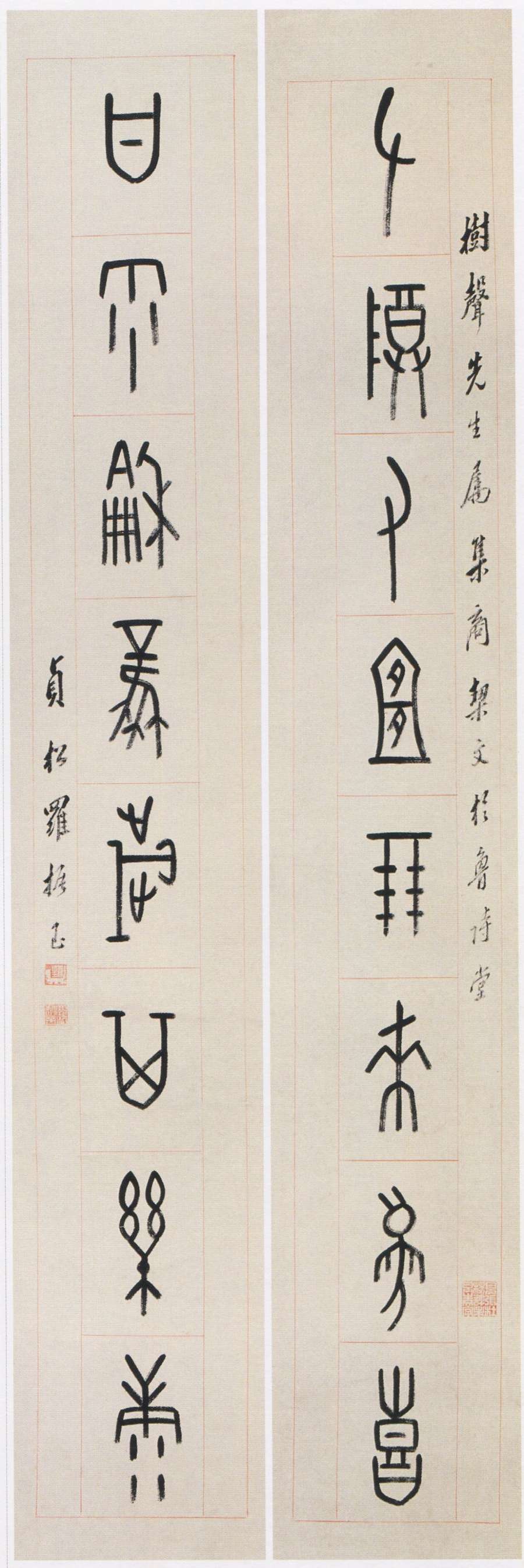 羅振玉《甲骨文左尊甘雨八言聯》
